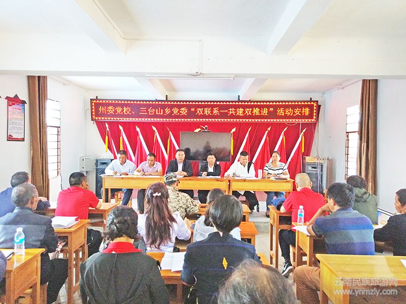 為認(rèn)真貫徹落實黨的十九大精神和德宏州委州政府關(guān)于進(jìn)一步加強“掛包幫”“轉(zhuǎn)走訪”定點扶貧工作,“雙聯(lián)系一共建雙推進(jìn)”相關(guān)要求,扎實做好“掛包幫”“轉(zhuǎn)走訪”工作,德宏州委黨校聯(lián)合芒市三臺山德昂族鄉(xiāng)黨委政府,充分利用開展第36個民族團(tuán)結(jié)月宣傳活動之際,結(jié)合實際開展了一系列的活動。首先是請州委黨校的教授開展了民族團(tuán)結(jié)道德大講堂講座;其次是召集鄉(xiāng)黨委政府班子、村兩委和建檔立卡戶共同對脫貧攻堅效果結(jié)合實際,認(rèn)真做了分析研討;第三是按照有工作方案、有結(jié)對共建協(xié)議、有活動記錄,有脫貧攻堅效果的目標(biāo),對“雙聯(lián)系一共建雙推進(jìn)”做了安排。同時,還開利用發(fā)放宣傳單、張榜宣傳欄開展了反邪教宣傳。活動中,還邀請了德宏州創(chuàng)建全國民族團(tuán)結(jié)進(jìn)步示范州領(lǐng)導(dǎo)小組辦公室、德宏州民族宗教事務(wù)局相關(guān)領(lǐng)導(dǎo)參加了活動。在活動間隙,德宏州委黨校的全體教職工還到各自的掛鉤戶家中走訪,了解掛鉤戶的生產(chǎn)生活情況。