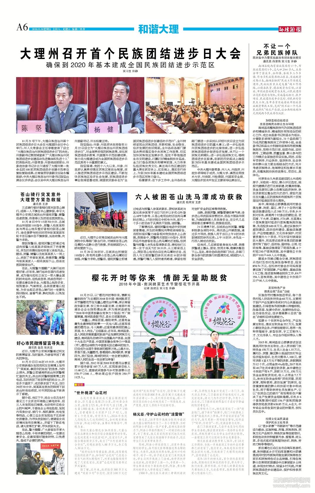 陳堅指出:州委、州政府決定將每年11月22日設(shè)立為“大理白族自治州民族團結(jié)進(jìn)步日”,對全面貫徹黨的民族政策,深化民族團結(jié)進(jìn)步教育,鞏固提升示范創(chuàng)建成果,努力將大理建設(shè)成為全國民族團結(jié)進(jìn)步示范區(qū)具有十分重要的意義。