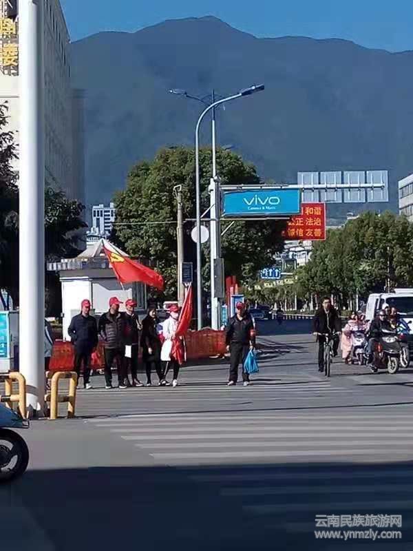 一支部全體黨員佩戴志愿者服務(wù)小紅帽、紅色袖章,來到人口通行較為密集的蒼山路與漾濞路交匯處的紅綠燈路口,通過手勢(shì)、言語(yǔ)勸導(dǎo)方式,對(duì)行人不走人行道、不走斑馬線、橫穿馬路、不按指示燈走及闖紅燈等交通違法行為進(jìn)行勸導(dǎo)和引導(dǎo)。志愿者們的文明執(zhí)勤、熱情服務(wù),贏得了過往居民群眾的大力稱贊。