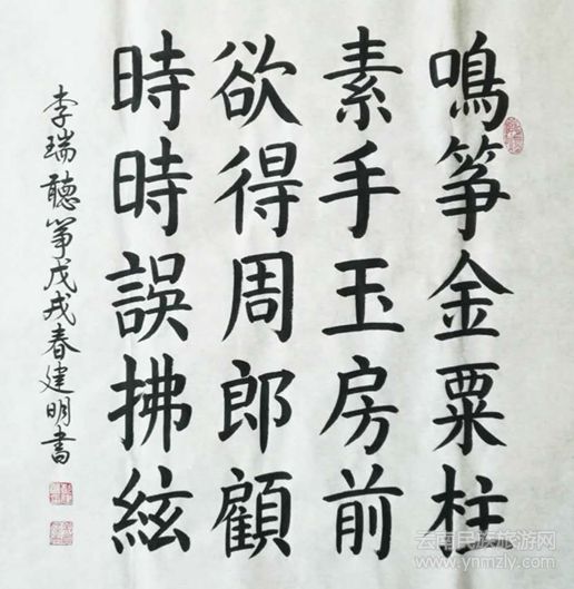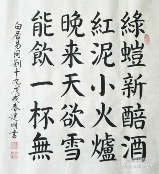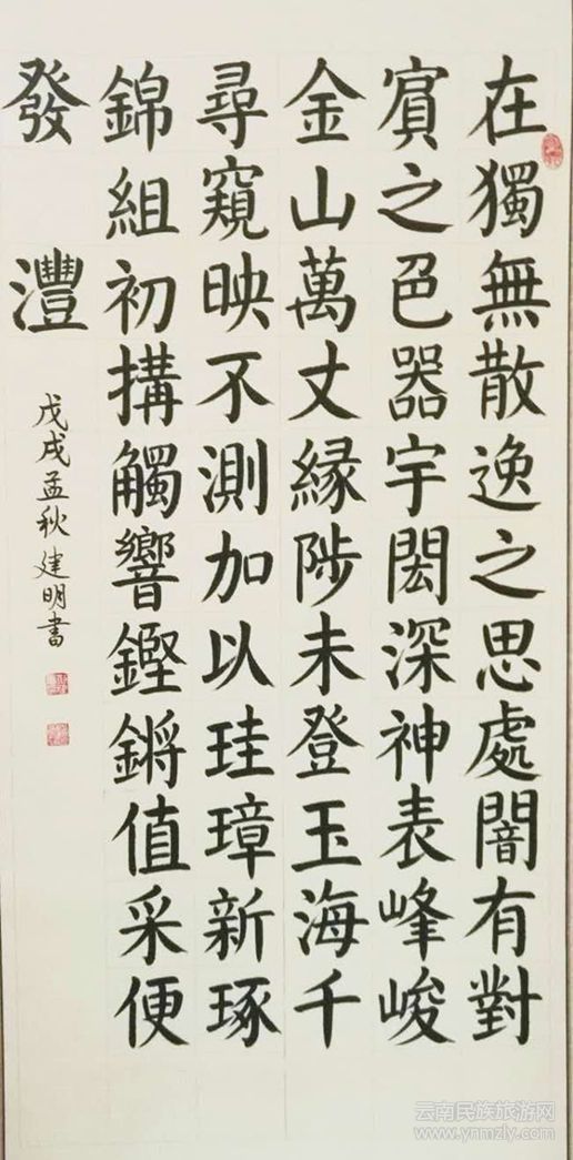 彭建明自幼喜好書畫,在校時(shí)擅攻水粉人物畫和美術(shù)字。工作后多次參加大型展覽,擔(dān)任文字書寫和美術(shù)裝璜工作。繪制機(jī)械設(shè)計(jì)圖紙,練就了一手標(biāo)準(zhǔn)俊秀的仿宋字體。退休后,努力學(xué)習(xí)書法傳統(tǒng)理論,致力于楷書(顏楷、歐楷),行書和隸書的學(xué)習(xí)和創(chuàng)作。近幾年來,多次應(yīng)邀參加多家銀行為客戶書寫新春聯(lián)的活動(dòng)。2012年12月在昆明大觀公園舉辦個(gè)人書法展。