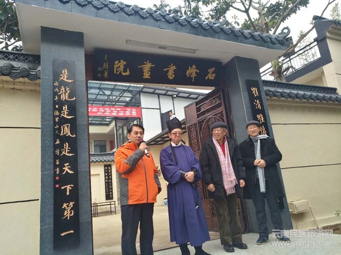 2018年12月30日下午,歲末迎新之際,石峰與前云南省文聯(lián)主席、云南省政協(xié)文史委副主任鄭明,云南大學(xué)著名教授、云南省文史館館員趙浩如,云南藝術(shù)學(xué)院教授、中國美協(xié)會員孫建東一起揭開了紅色的布幕,在熱烈的掌聲中,由我國著名青年書法家于鐘華書寫的牌匾“石峰書畫院”,幾個(gè)揮灑自如,大氣凜然的字展現(xiàn)出來。
