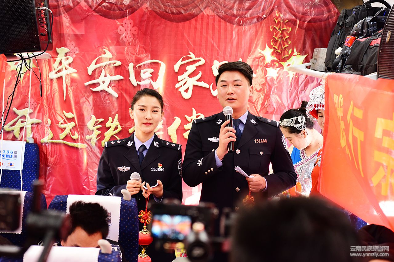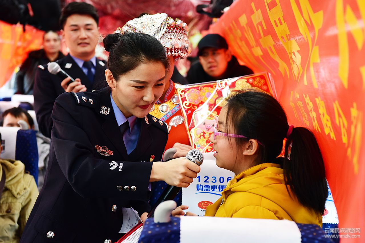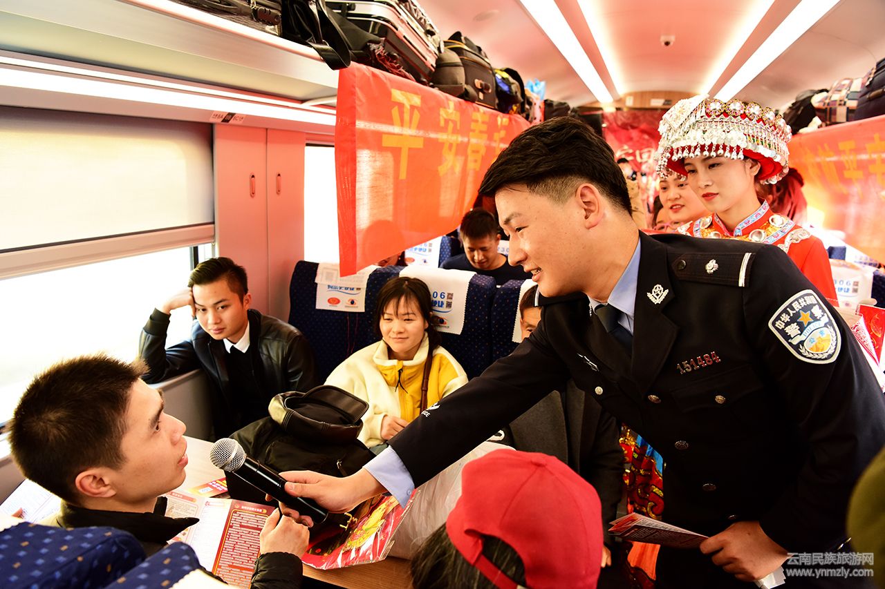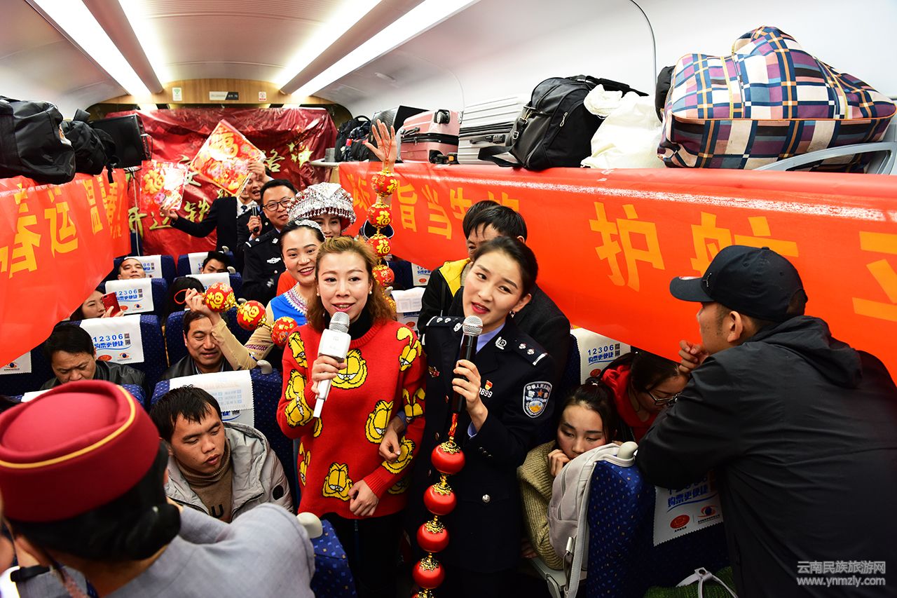 溫馨春運(yùn)情,幸?;丶衣?。1月28號(hào),在昆明開往蒙自的C8304次“國槐綠”動(dòng)車上,民警們以唱響云南民歌為主題,為旅客精心準(zhǔn)備了一臺(tái)列車春晚,讓歸心似箭的游子們提前感受了家的溫暖。