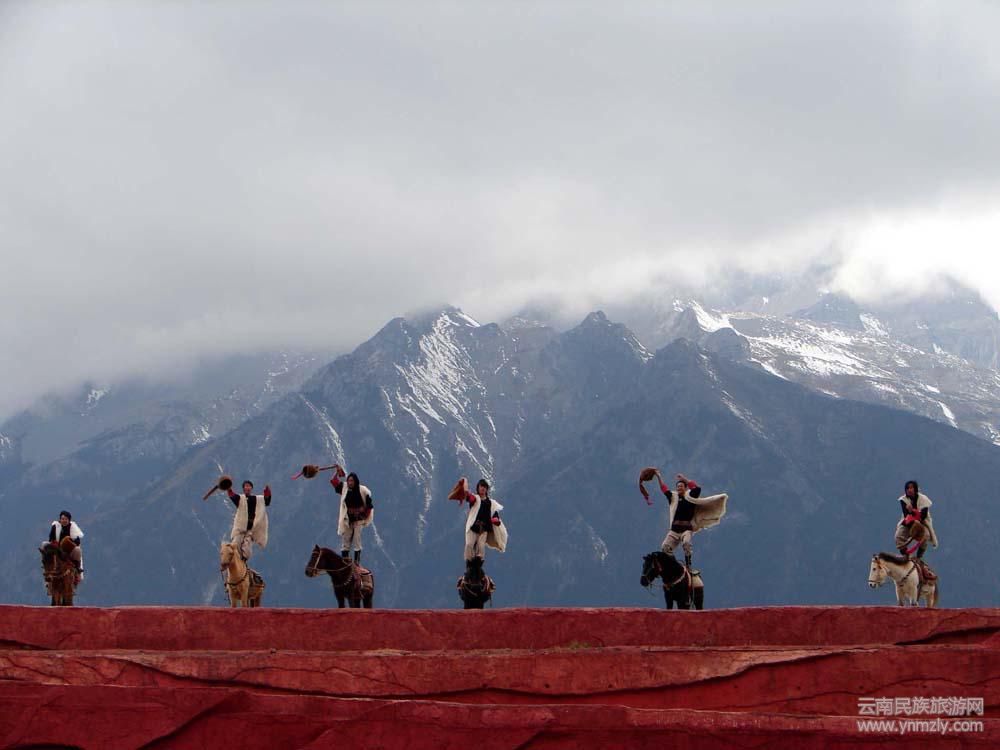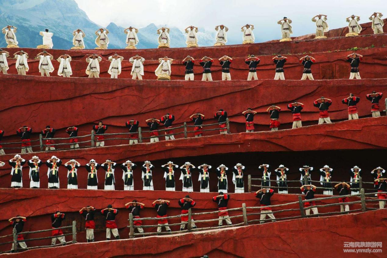 在這神奇廣袤的麗江土地上,在這只可仰視的玉龍雪山下,沒有華麗的背景,沒有絢爛的燈光效果;只有撲面而來的泥土汗水的味道,只有像父輩祖先一樣厚實(shí)的肩膀。這些來自麗江當(dāng)?shù)氐谋硌菡哂米钤膭?dòng)作、最質(zhì)樸的歌聲、最滾燙的汗水,與天地共舞,與自然同聲。