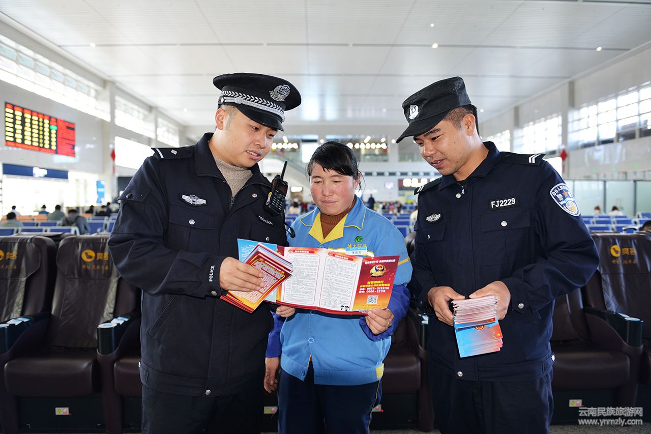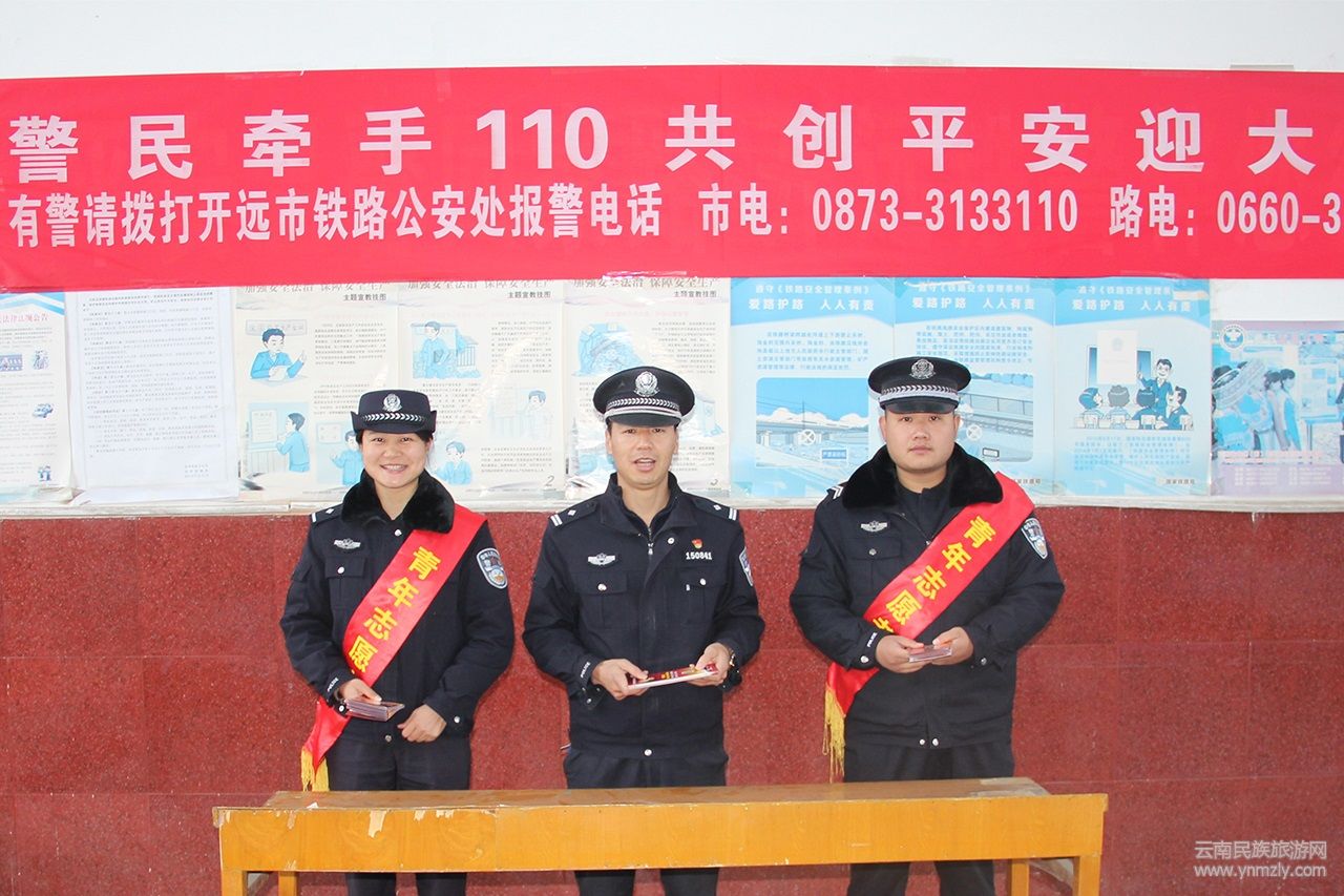 春運將至,為提高廣大旅客的安全出行意識,云南開遠鐵路公安處以全國第33個“110宣傳日”為契機,在管內(nèi)15個客運車站、王家營西貨場及值乘旅客列車上,集中開展以“警民牽手110,共創(chuàng)平安迎大慶”為主題的宣傳活動,深入旅客列車、候車室、站前廣場向旅客群眾普及“110”報警求助常識和安全出行知識。