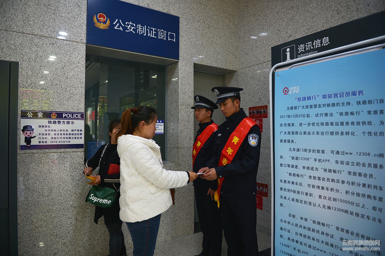 ▲學(xué)警們指導(dǎo)旅客進行證件辦理