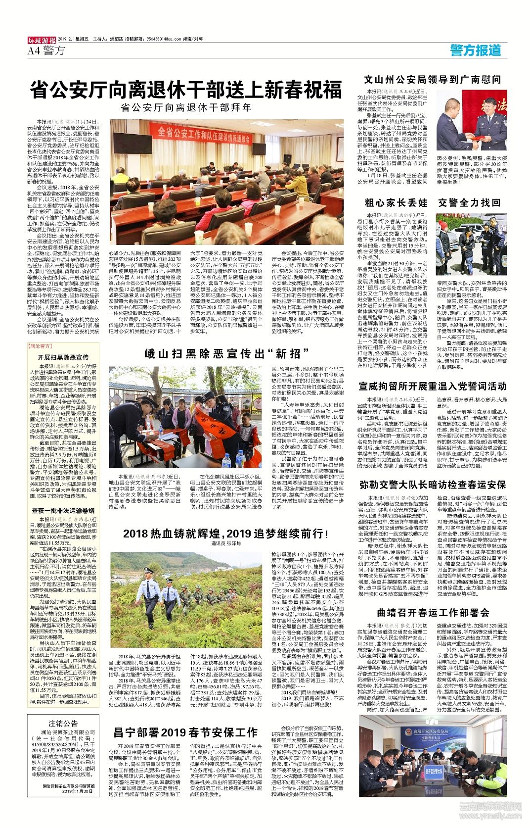 本報(bào)訊(通訊員 周利東)近日,峨山縣公安文聯(lián)組織開展了“我們的中國夢.文化進(jìn)萬家”——峨山縣公安文聯(lián)走進(jìn)化念移民新村迎新春送春聯(lián)暨掃黑除惡宣傳活動(dòng)。