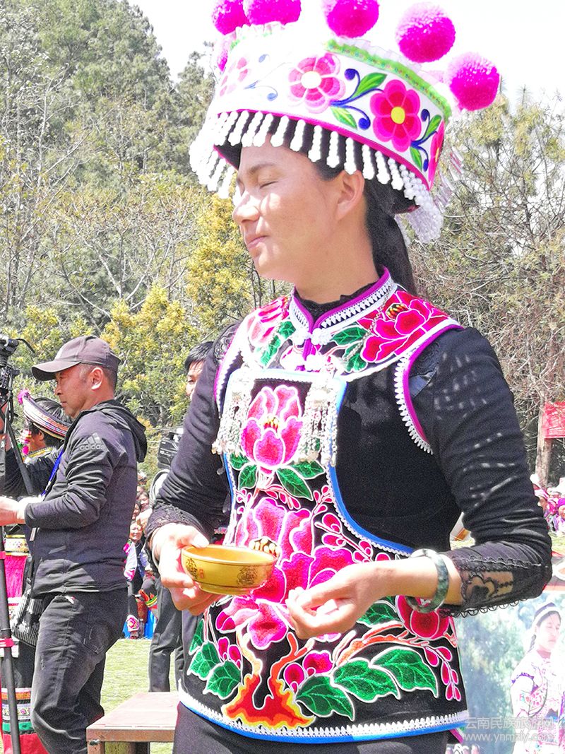 “從明朝天峰山老君殿開山建寺后,每年農歷二月十五,以彝族群眾為主體的民族歌會一直延續(xù)至今。大理州祥云縣普淜天峰山歌會,收藏于縣級公布的非物質文化遺產保護(民俗)名錄,傳說天峰山歌會是為了紀念彝族先祖孟獲夫人祝融。祝融在戰(zhàn)場上英勇善戰(zhàn),連諸葛亮都曾敗于她的手下。生活中,她教導彝族婦女做衣紡織。于是,每年在她生日農歷二月十五這天,聚居于此的彝族同胞都會穿上盛裝,以傳統(tǒng)生態(tài)歌舞的形式來紀念孟獲夫人。”祥云縣民宗局民族股股長楊叢英介紹說。