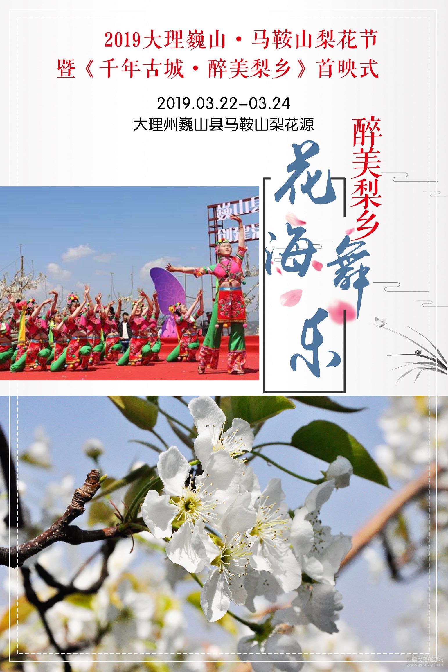 以“傳承保護(hù)民族文化,促進(jìn)鄉(xiāng)村旅游發(fā)展,鞏固脫貧攻堅(jiān)成果,全面推動(dòng)鄉(xiāng)村振興”為主題的2019大理巍山·馬鞍山梨花節(jié)將于3月22日在大理州巍山縣馬鞍山梨花源盛大開幕,屆時(shí),將同時(shí)舉行《千年古城•醉美梨鄉(xiāng)》首映式活動(dòng)。本屆梨花節(jié)系列活動(dòng)由大理州非遺中心、中共巍山縣委農(nóng)村工作領(lǐng)導(dǎo)小組辦公室主辦,中共馬鞍山鄉(xiāng)委員會(huì)、馬鞍山鄉(xiāng)人民政府、中共巍山縣委政策研究室、巍山縣扶貧辦、巍山縣文化和旅游局、巍山縣農(nóng)業(yè)農(nóng)村局承辦,巍山縣馬鞍山鄉(xiāng)紅雪梨協(xié)會(huì)、巍山縣綠源林果有限責(zé)任公司、大理市至立文化傳播有限公司協(xié)辦,活動(dòng)將持續(xù)至3月24日。