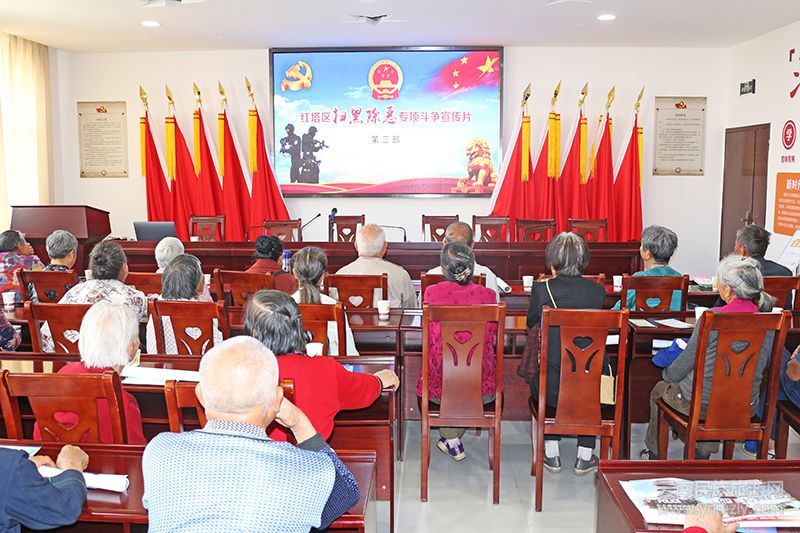 在活動中,社區(qū)民警馮存煥向全體人員傳達中央、省、市、區(qū)相關(guān)掃黑除惡專項斗爭的精神及要求,介紹紅塔區(qū)掃黑除惡專項斗爭工作的開展情況,并詳細講解鳳凰街道、紅塔山派出所掃黑除惡打擊整治的重點,帶領(lǐng)大家學習掃黑除惡相關(guān)知識,詳細講解關(guān)于黑惡勢力存在種種現(xiàn)象,讓大家了解什么是黑,什么是惡,“村霸”特征和黑惡勢力“保護傘”包括哪些方面,什么是“惡勢力”組織及“黑社會性質(zhì)組織”,農(nóng)村地區(qū)的打擊重點、涉黑涉惡重點領(lǐng)域。并告知大家如果發(fā)現(xiàn)黑惡勢力在身邊要積極舉報,知曉舉報方式,遇到軟暴力行為該如何處置,遇到黑惡勢力時該如何在保護自身安全的情況下進行檢舉揭發(fā)。