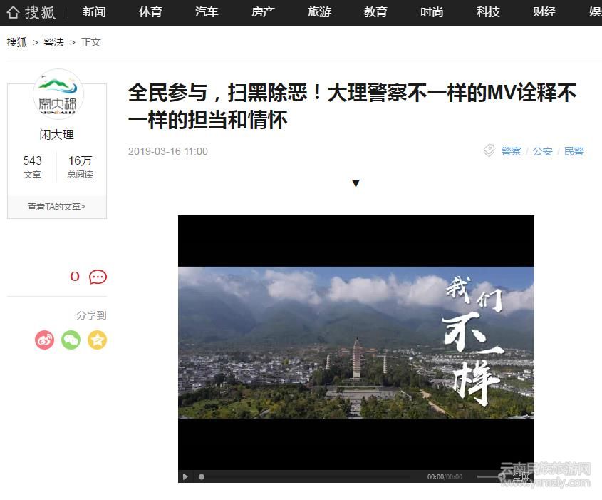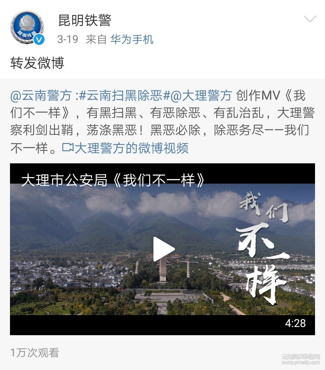 該MV以開展掃黑除惡專項(xiàng)斗爭為創(chuàng)作背景,由民警自拍、自導(dǎo)創(chuàng)作,歌詞根據(jù)流行歌曲《我們不一樣》填詞改編,并由市公安局民警演唱,整首MV從策劃、填詞、演唱、錄制、拍攝、剪輯,再到立意、內(nèi)容表現(xiàn)與制作……旋律朗朗上口,畫面激昂動(dòng)人!新浪、搜狐、騰訊、云南網(wǎng)等多家媒體轉(zhuǎn)載報(bào)道,其中,云南網(wǎng)刊發(fā)《掃黑除惡 云南警察蜀黍拍了一部走心MV》、云南警方刊發(fā)《蜀黍走心MV<我們不一樣>》、大理微報(bào)刊發(fā)《我們不一樣!大理警察自制MV詮釋掃黑情懷》等,云南發(fā)布、云南警方、昆明鐵警、999微大理、大理微博在線、頭條大理、閑大理、大理微新聞等微信微博推送視頻,“今日頭條”客戶端同步推出,詮釋著公安民警利劍出鞘、蕩滌黑惡的堅(jiān)定決心和不一樣的擔(dān)當(dāng)情懷。通訊員 張慶龍(文章來源環(huán)球游報(bào))