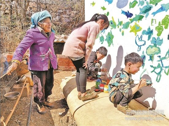 (云南日?qǐng)?bào)記者 熊明) “我們家也得行動(dòng)了,把舊房翻建成新房,搞得漂亮些,也請(qǐng)外國畫家畫個(gè)大壁畫。”新春時(shí)分,在東川區(qū)最南邊的阿旺鎮(zhèn)關(guān)中村江灣地小組,村民張德做一家商量妥一個(gè)新決定。“聽駐村工作隊(duì)的孫老師說,我們關(guān)中村以后要有100幅國際藝術(shù)壁畫,還要發(fā)展鄉(xiāng)村藝術(shù)旅游。”平時(shí)在外打工、春節(jié)回家過年的女兒舉手贊同。元宵節(jié)剛過,全家總動(dòng)員就開始了拆舊建新?! ?/p>