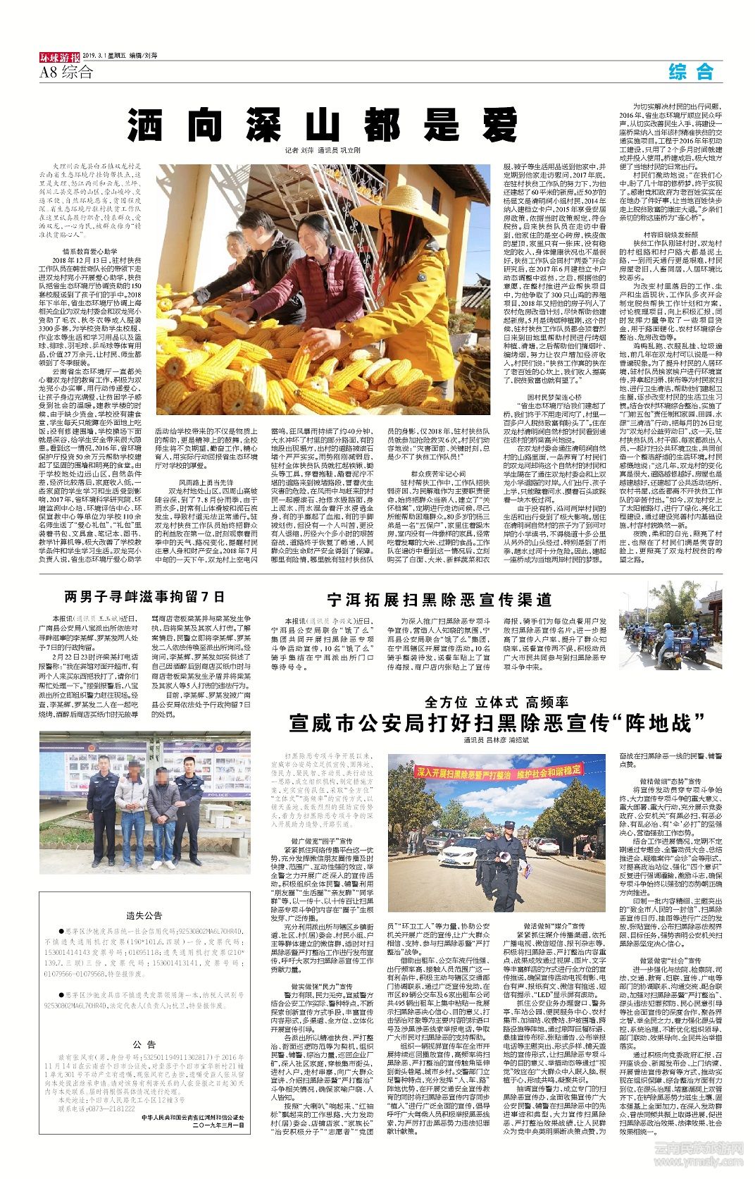 夜晚,柔和的白光,照亮了村莊,也照在了村民們滿是笑容的臉上,更照亮了雙龍村脫貧的希望之路。(文章來源環(huán)球游報2019年3月1日第1178期A8期)