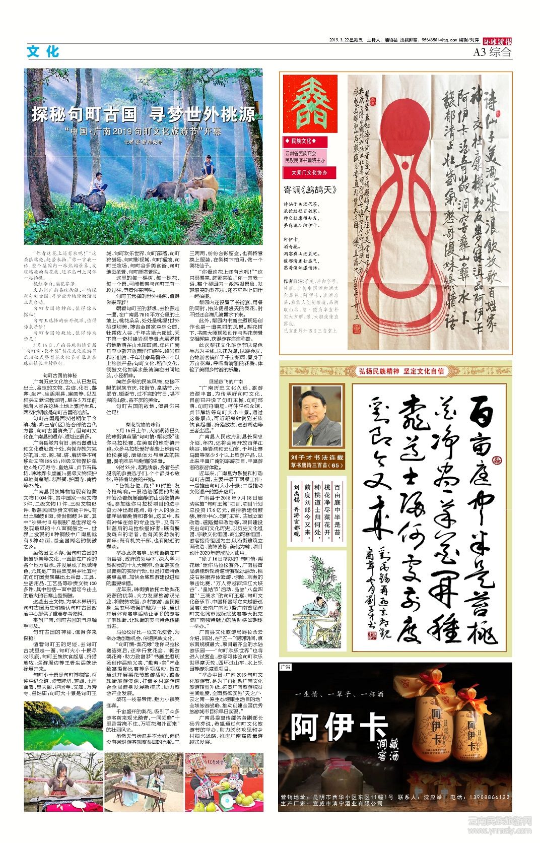 廣南縣委宣傳部常務(wù)副部長楊秀芬說,希望通過句町文化旅游節(jié)的舉辦,助力脫貧攻堅和鄉(xiāng)村振興戰(zhàn)略,推進廣南高質(zhì)量跨越式發(fā)展。(文章來源環(huán)球游報2019年3月22日第1181期A3版)