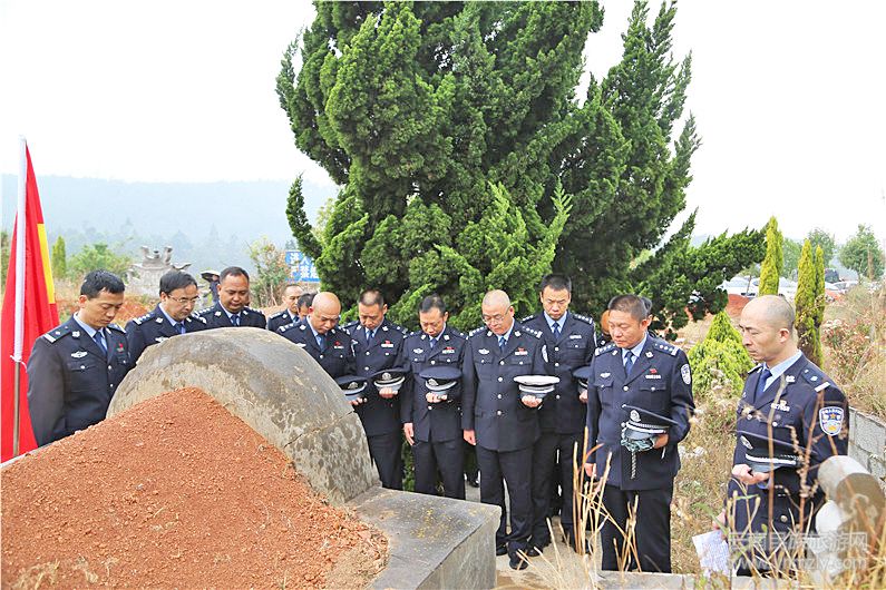 在普廟大山楊永祥烈士墓前,分局全體民警冒著小雨整齊列隊(duì),警容嚴(yán)整,懷著十分崇敬的心情向楊永祥烈士墓鞠躬致敬、脫帽默哀3分鐘,對楊永祥烈士舍生取義、以身護(hù)法的大無畏精神表達(dá)深切的緬懷之情。政治工作辦公室民警代表全局民警和警輔致辭,表達(dá)了對烈士的深切悼念,號召全局民警和警輔人員向楊永祥烈士學(xué)習(xí),學(xué)習(xí)他對黨和人民無限忠誠、學(xué)習(xí)他愛崗敬業(yè)、恪盡職守、無私奉獻(xiàn)的高尚品德,學(xué)習(xí)他甘于奉獻(xiàn)、勇于犧牲的精神,切實(shí)擔(dān)負(fù)起保一方平安的責(zé)任,為紅塔區(qū)經(jīng)濟(jì)社會發(fā)展提供長期和諧穩(wěn)定的社會環(huán)境而奮斗!