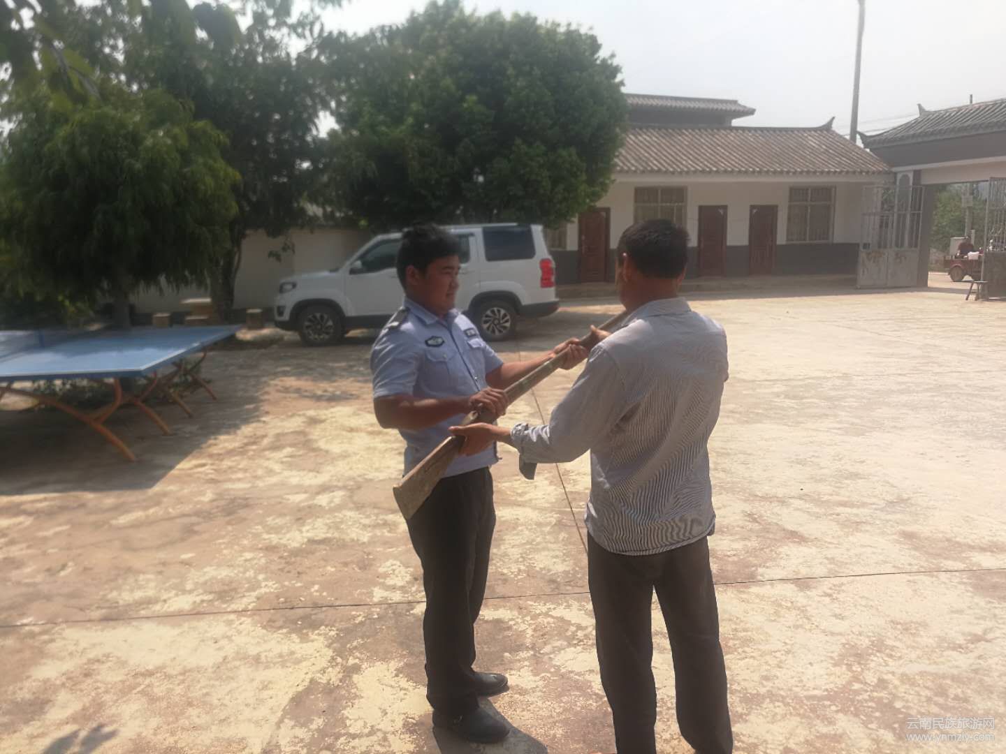 自2019年1月來,各派出所民警、輔警在開展掃黑除惡專項斗爭宣傳工作的同時,社區(qū)民警、扶貧攻堅駐村工作隊,入戶走訪等多種形式宣開展緝槍治爆專項行動,教育引導(dǎo)村民主動上交槍彈等違禁物品,切實消除了潛在的安全隱患。