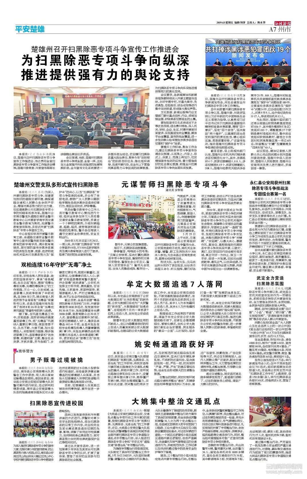 截至目前,經(jīng)上級(jí)相關(guān)部門認(rèn)定,楚雄州公安機(jī)關(guān)共打掉涉黑涉惡犯罪團(tuán)伙19個(gè)。其中,涉黑組織4個(gè)、抓獲犯罪嫌疑人111人,涉惡犯罪團(tuán)伙15個(gè)、抓獲犯罪嫌疑人208人。楚雄州檢察機(jī)關(guān)起訴涉惡案件21件、169人。楚雄州紀(jì)檢監(jiān)察機(jī)關(guān)共受理核查反映涉黑涉惡腐敗及“保護(hù)傘”問題線索189件,立案查處涉黑涉惡腐敗及“保護(hù)傘”問題34件,已辦結(jié)處理22件22人,問責(zé)5件5人,給予黨紀(jì)政務(wù)處分17人,移送司法機(jī)關(guān)13人。