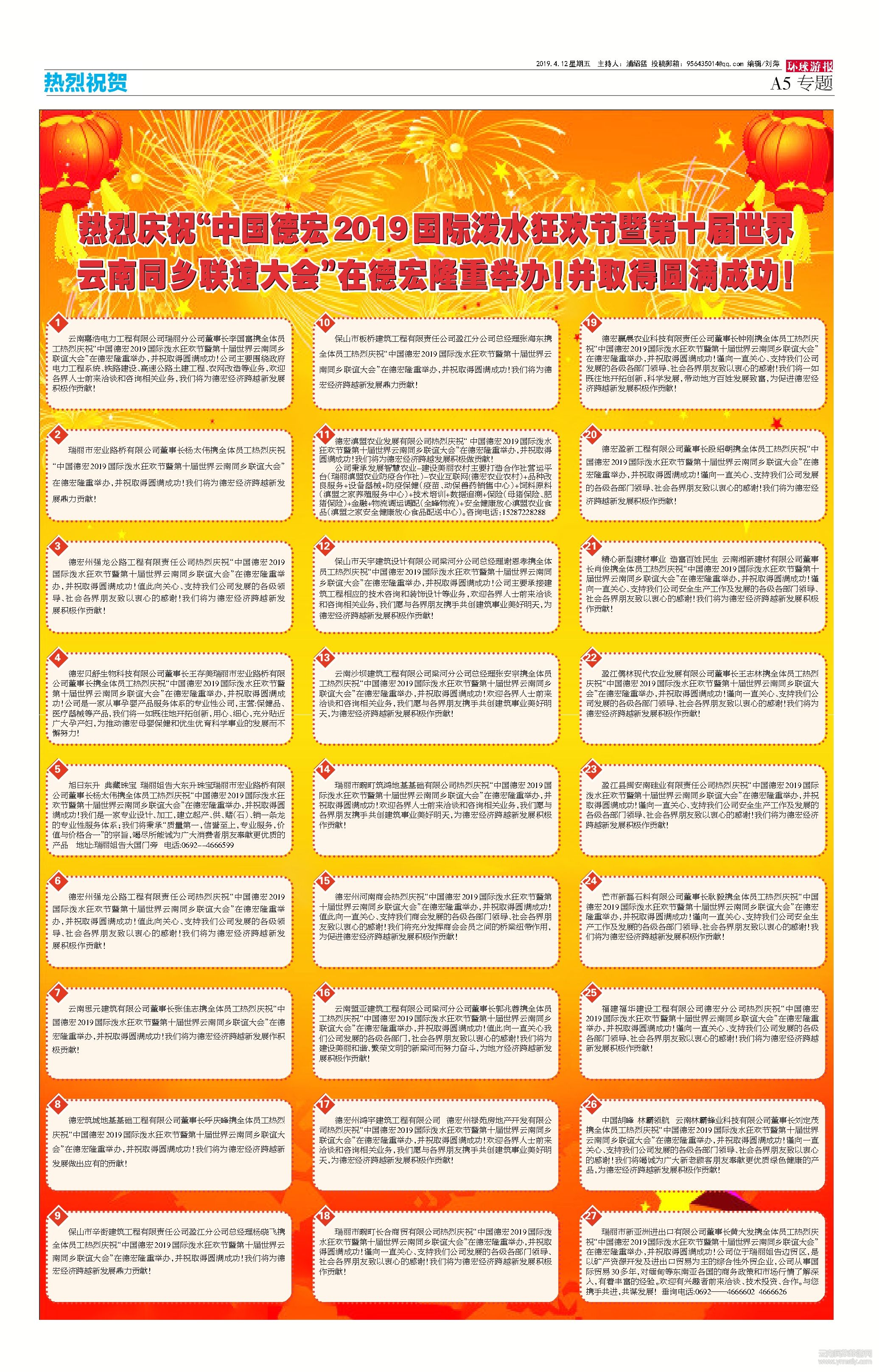 8.德宏筑城地基基礎工程有限公司董事長呼慶峰攜全體員工熱烈慶祝“中國德宏2019國際潑水狂歡節(jié)暨第十屆世界云南同鄉(xiāng)聯(lián)誼大會”在德宏隆重舉辦,并祝取得圓滿成功!我們將為德宏經(jīng)濟跨越新發(fā)展做出應有的貢獻!