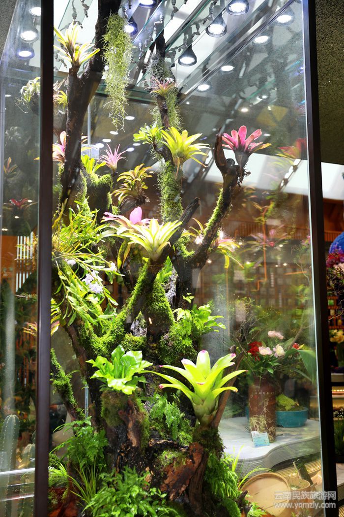 靠近它,整個人仿佛置身在雨林中,享受著陽光和綠植的滋養(yǎng)??兹甘窃颇系拿颇橡^當(dāng)然也少不了它的身影。以各色鮮切花,插花,及花卉工藝品為主打造的充滿繽紛色彩的孔雀花藝,姿態(tài)旖旎,栩栩如生。后續(xù)還將呈現(xiàn)不同主題的花卉、花藝、盆景等展品。