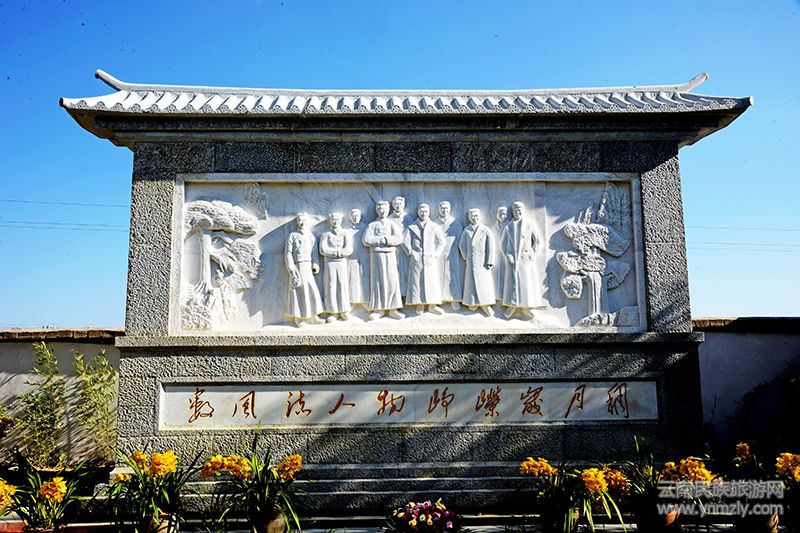 浮雕高4.8米、長7.5米,材質為漢白玉。浮雕根據(jù)歷史資料記載和保存的圖片資料,以1920年初王復生、鄧中夏、羅章龍等志士仁人,于北京陶然亭歡送赴京開展革命活動返湘的毛澤東合影照為素材,由王復生烈士女兒王智中、怡志園負責人趙瑞昌、大波那愛心人士張如武共同出資,大理耘天工作室楊偉設計,工匠劉高武雕刻,配以《天地無私山河有源》《華夏英杰一門三雄》石刻銘文,構成了有機聯(lián)系渾然一體的紅色文化群雕。