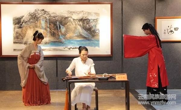 在現(xiàn)場國學(xué)院成員彈奏了音色優(yōu)美的古箏曲,兩個穿著漢民族的傳統(tǒng)服飾猶如不食人間煙火的仙女和仙子緩緩的走向現(xiàn)場的嘉賓,展示我國華夏的璀璨文明。