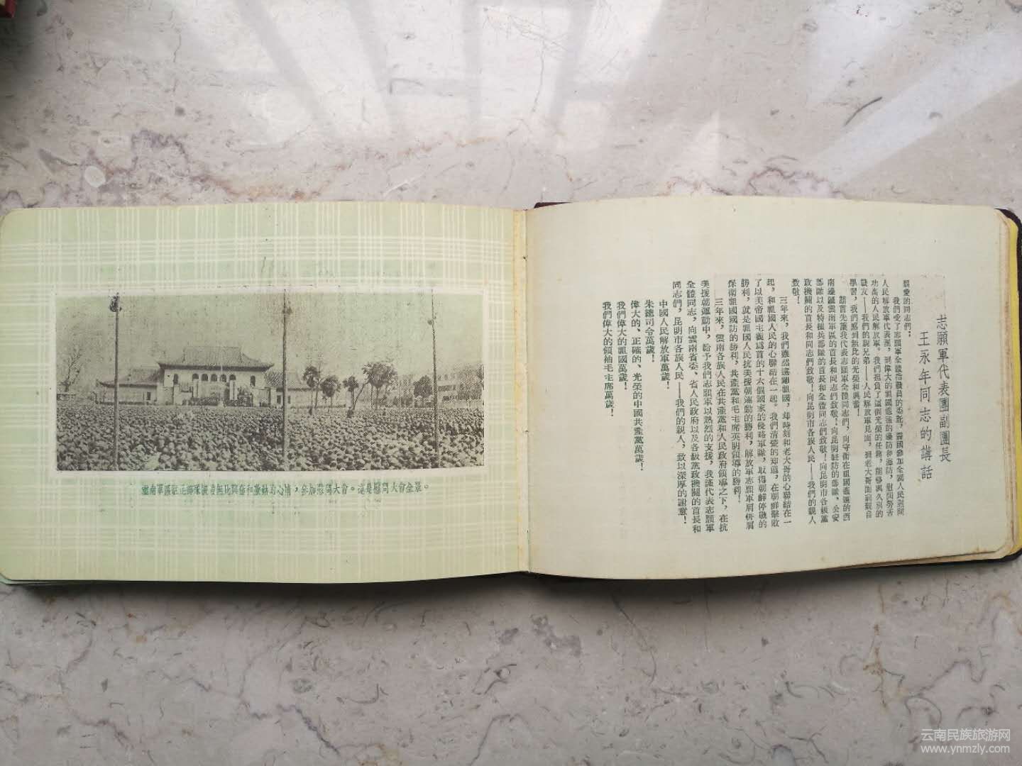 在我的日記本、紀(jì)念冊(cè)藏品中,這本《全國(guó)人民慰問(wèn)人民解放軍代表團(tuán)慰問(wèn)云南軍區(qū)部隊(duì)紀(jì)念冊(cè) 中國(guó)人民解放軍云南軍區(qū) 敬贈(zèng) 1954.5.1》紀(jì)念冊(cè)如同一面歷史的鏡子,見(jiàn)證著全國(guó)規(guī)模盛大的慰問(wèn)解放軍活動(dòng),也記錄了人民解放軍解放云南后,4年時(shí)間里改變舊時(shí)代、開(kāi)辟新中國(guó)的那段歷史。