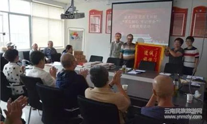 “近年來,靈光社區(qū)黨總支、社區(qū)居委會、社區(qū)工作站,為轄區(qū)群眾做出了很多積極的努力和貢獻。今天,我代表北河埂370號院壩的全體住戶和轄區(qū)居民,向全體社區(qū)工作人員表示謝意,謝謝你們!”原三農(nóng)場離退休黨支部書記、社區(qū)居民代表羅光清將一面題為“誠信為民 造福百姓”的錦旗交到了社區(qū)黨總支書記張倩的手中。6月28日下午,靈光社區(qū)黨總支慶祝建黨98周年和迎接建國70周年“不忘初心、牢記使命”主題教育系列活動,在轄區(qū)居民的謝意聲中正式拉開了帷幕,靈光社區(qū)黨總支的36名黨員參加了此次活動。