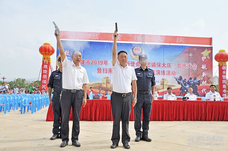 本報(bào)訊(記者 陳永華 通訊員 馬超)7月4日上午10時(shí),楚雄市2019年“踐行新使命、忠誠(chéng)保大慶”誓師大會(huì)暨掃黑除惡專(zhuān)項(xiàng)斗爭(zhēng)實(shí)戰(zhàn)演練在楚雄州文化中心廣場(chǎng)舉行。楚雄州人民政府副州長(zhǎng)、州公安局局長(zhǎng)馬聞出席大會(huì)并觀摩演練。