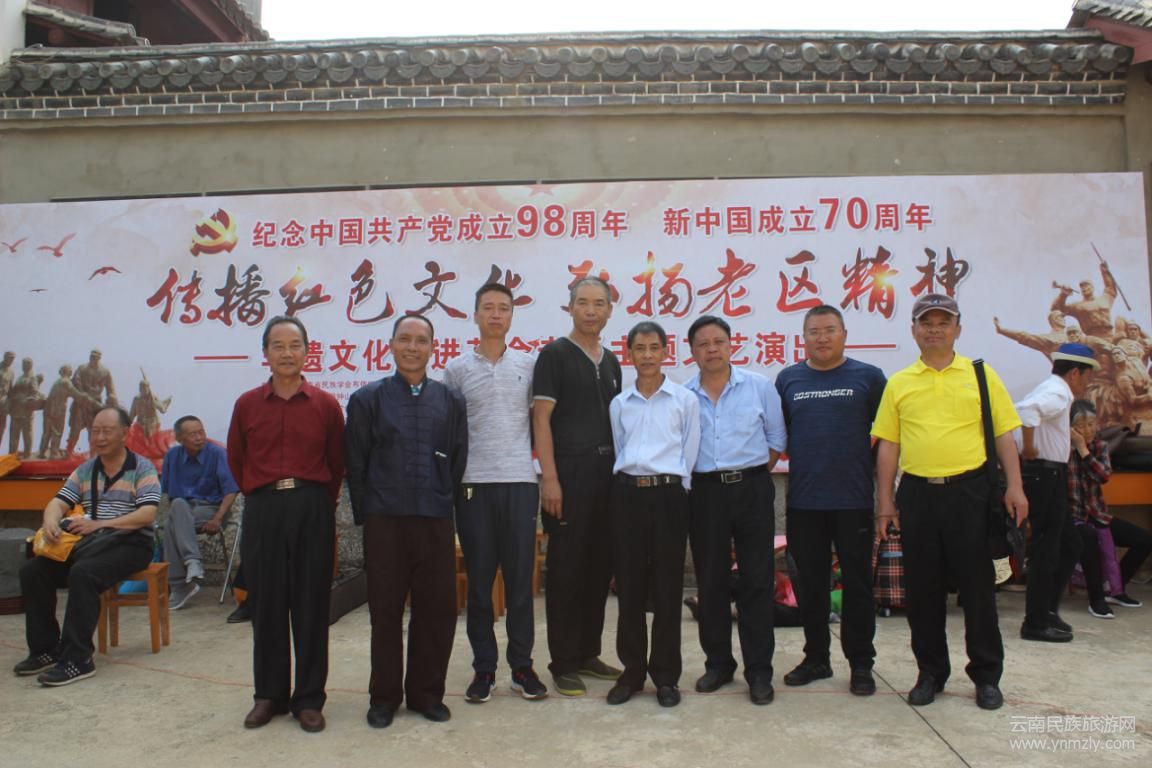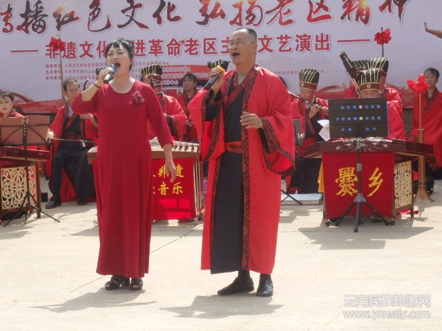 6月27日,在建黨98周年、建國70周年紀念日來臨之際,由云南省民族學會布依學研究委員會、曲靖市文化發(fā)展研究中心指導;中共羅平縣鐘山鄉(xiāng)黨委政府、曲靖市洞經(jīng)音樂協(xié)會主辦;“紀念中國共產(chǎn)黨成立98周年、新中國成立70周年非遺文化走進革命老區(qū)系列主題活動”走進云南省羅平縣鐘山革命老區(qū)。中共鐘山鄉(xiāng)委員會黨委書記阮吉煥致辭,云南省民族學會布依學研究委員會會長韋光文作指導發(fā)言,曲靖市洞經(jīng)音樂藝術團主持人古麗華主持,來自省市縣鄉(xiāng)四級領導嘉賓與鐘山鄉(xiāng)魯邑村的廣大群眾以及魯邑完小的師生約500余人觀看演出。