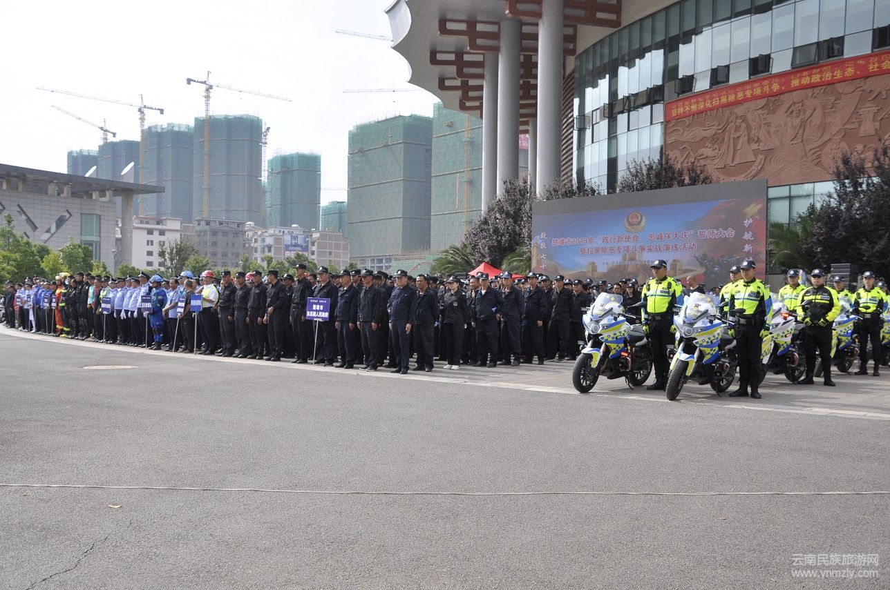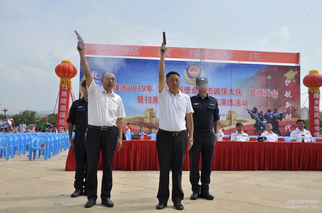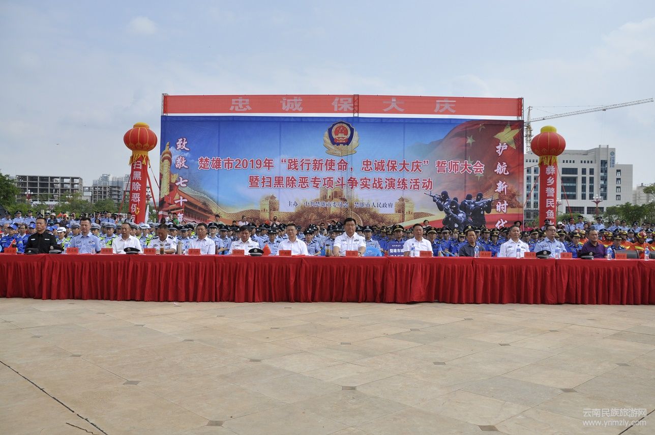 2019年7月4日上午10時,楚雄市2019年“踐行新使命、忠誠保大慶”誓師大會暨掃黑除惡專項斗爭實戰(zhàn)演練在楚雄州文化中心廣場舉行。楚雄州人民政府副州長、州公安局局長馬聞出席大會并觀摩演練。