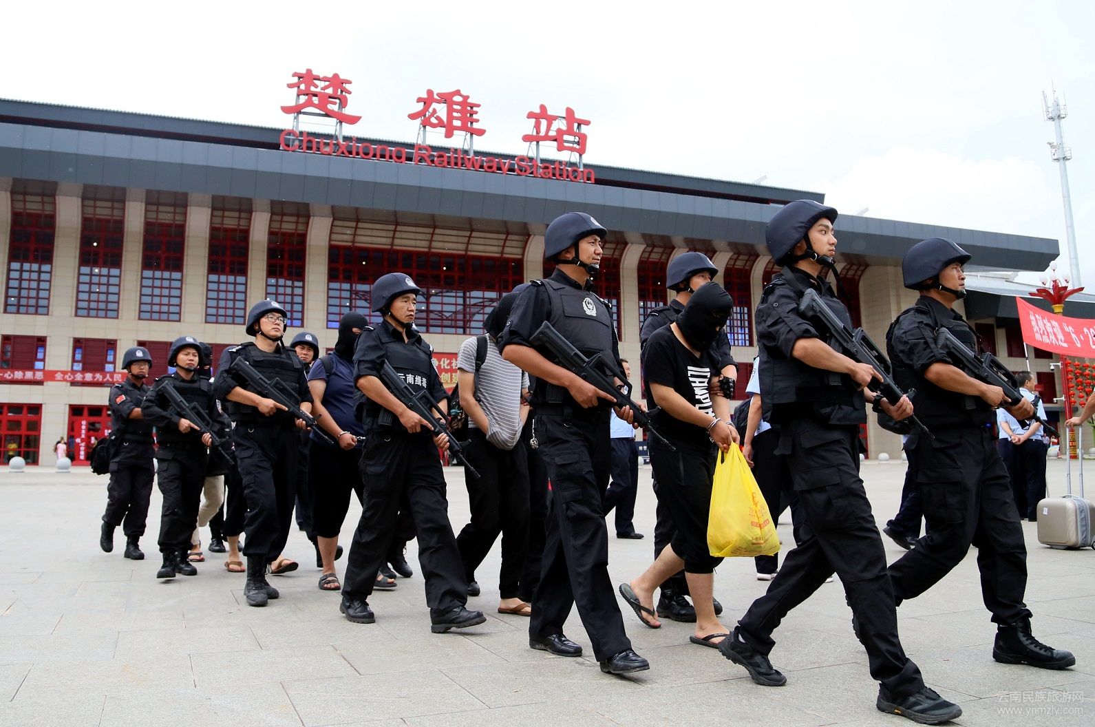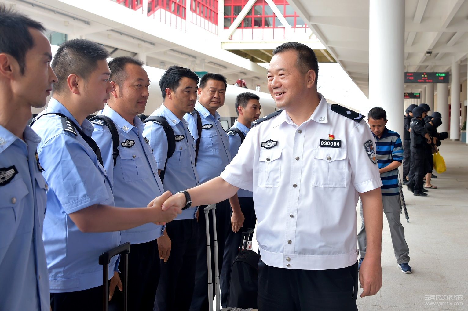 7月23日16時(shí)40分,伴隨著急促的鳴笛聲,由廣州南站至楚雄站的動(dòng)車緩緩駛?cè)胝九_(tái),車門打開,英勇威武的姚安“6·26網(wǎng)絡(luò)詐騙案”專案組民警押解著5名電信網(wǎng)絡(luò)詐騙犯罪嫌疑人走出車廂,站臺(tái)上瞬間響起熱烈的掌聲……楚雄州公安局黨委委員、副局長(zhǎng)戚玉剛率州局相關(guān)部門、姚安縣公安局主要領(lǐng)導(dǎo)在站內(nèi)整齊列隊(duì),歡迎姚安“6•26網(wǎng)絡(luò)詐騙案”專案組戰(zhàn)友凱旋歸來。