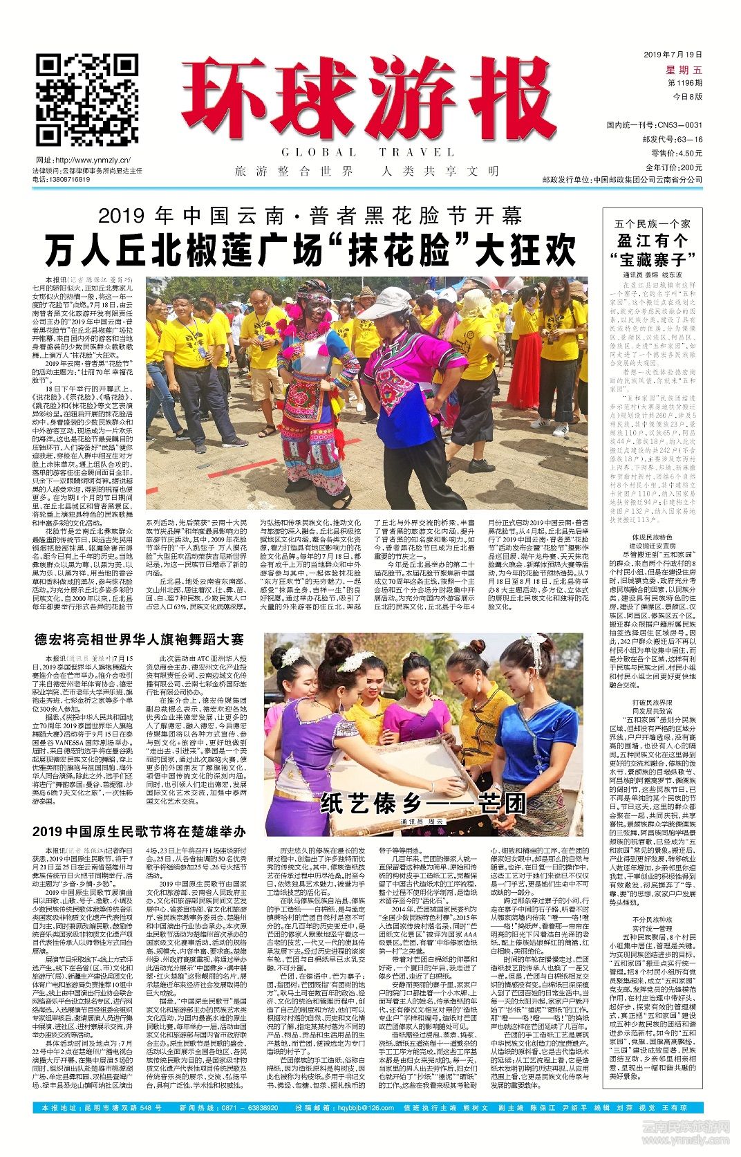 今年是丘北縣舉辦的第二十屆花臉節(jié)。本屆花臉節(jié)聚焦新中國(guó)成立70周年這條主線,按照一個(gè)主會(huì)場(chǎng)和五個(gè)分會(huì)場(chǎng)分時(shí)段集中開(kāi)展活動(dòng)。為充分向國(guó)內(nèi)外游客展示丘北的民族文化,丘北縣于今年4月份正式啟動(dòng)2019中國(guó)云南·普者黑花臉節(jié)。從4月起,丘北縣先后舉行了2019中國(guó)云南·普者黑“花臉節(jié)”活動(dòng)發(fā)布會(huì)暨“花臉節(jié)”攝影作品巡回展、端午龍舟賽、天天抹花臉篝火晚會(huì)、新媒體預(yù)熱大賽等活動(dòng),為今年的花臉節(jié)預(yù)熱造勢(shì)。從7月18日至8月18日,丘北縣將舉辦8大主題活動(dòng),多方位、立體式的展現(xiàn)丘北民族文化和獨(dú)特的花臉文化。(文章來(lái)源環(huán)球游報(bào)2019年7月19日第1196期A1版)