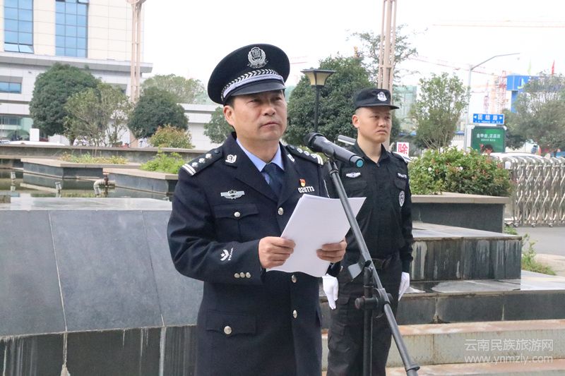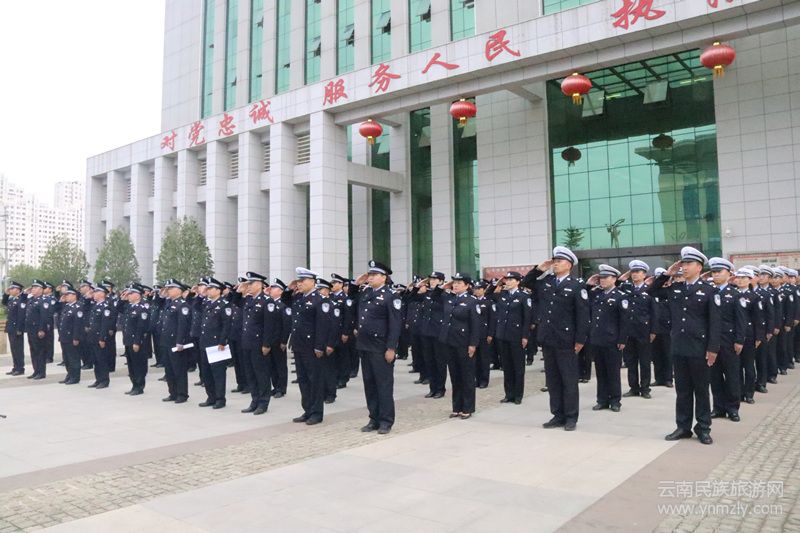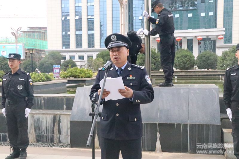 儀式上,全體民警、輔警身著戎裝、胸戴黨徽、整齊列隊佇立在國旗下。上午9時,隨著主持人“升旗儀式開始”的口令,雄壯的國歌聲響起,鮮艷的五星紅旗冉冉升起,隨風(fēng)飄揚,全體人員面向國旗敬禮。隨后,李明奎政委發(fā)表了講話。