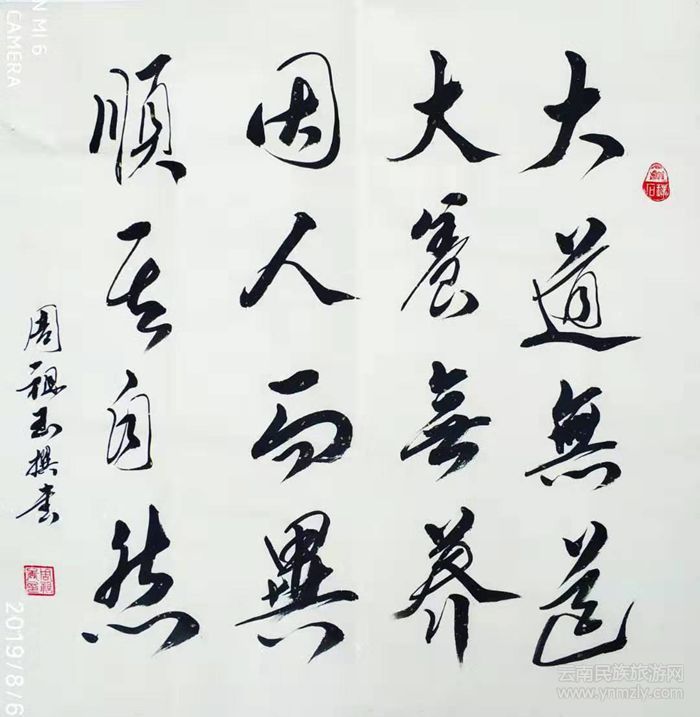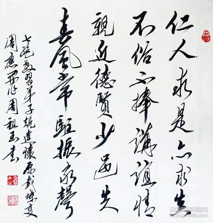 周祖玉先生長期堅持發(fā)掘美、弘揚美、生產(chǎn)美,撰著主編《蝶變》《當(dāng)代詩書畫影精品鑒藏》等書籍14部,為貧困山區(qū)捐資(捐書)助學(xué)6萬余元。周祖玉詩書畫作品曾與歐陽中石、范曾、馮遠、蘇世澍等9位世界書畫藝術(shù)大家的作品比肩匯編于《中國當(dāng)代杰出書畫藝術(shù)名家》出版發(fā)行,深受藏家和廣大消費者喜愛,在省級以上參賽中9次榮獲金獎、一等獎和優(yōu)秀獎。被收藏界評定為一級詩書畫藝術(shù)家;被“全國第二屆紫砂杯名家書法大賽組委會”和《民族時報》《環(huán)球游報》等知名報刊譽為“中國紅色傳承藝術(shù)名家”、“德藝雙馨藝術(shù)家”。