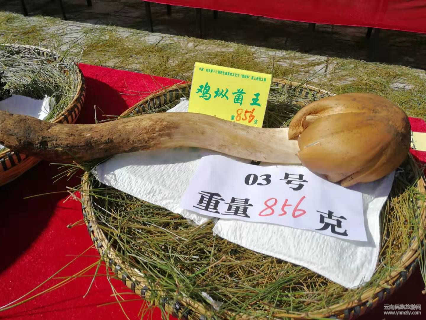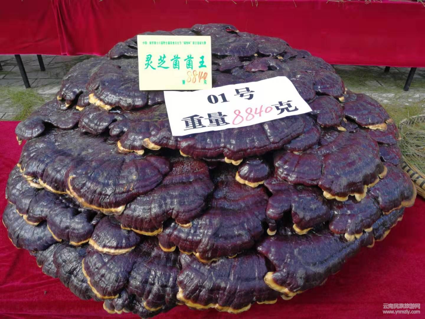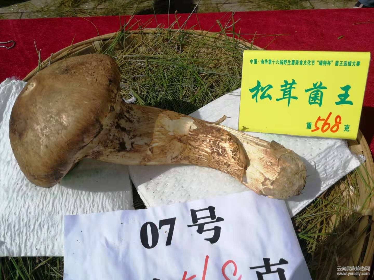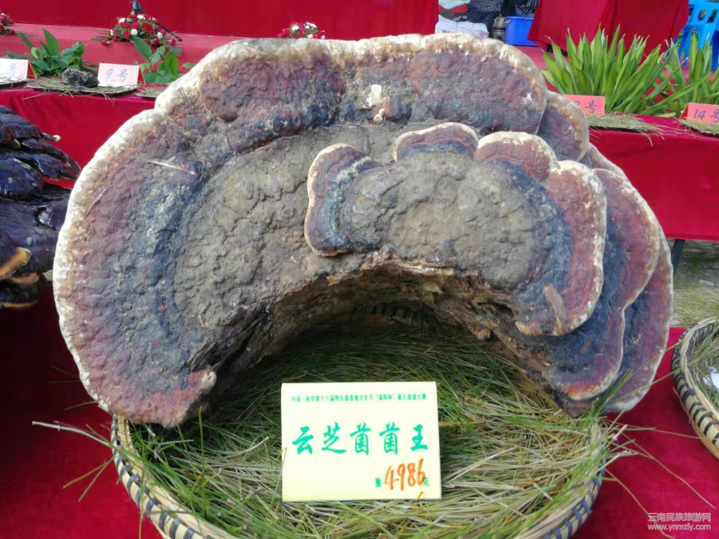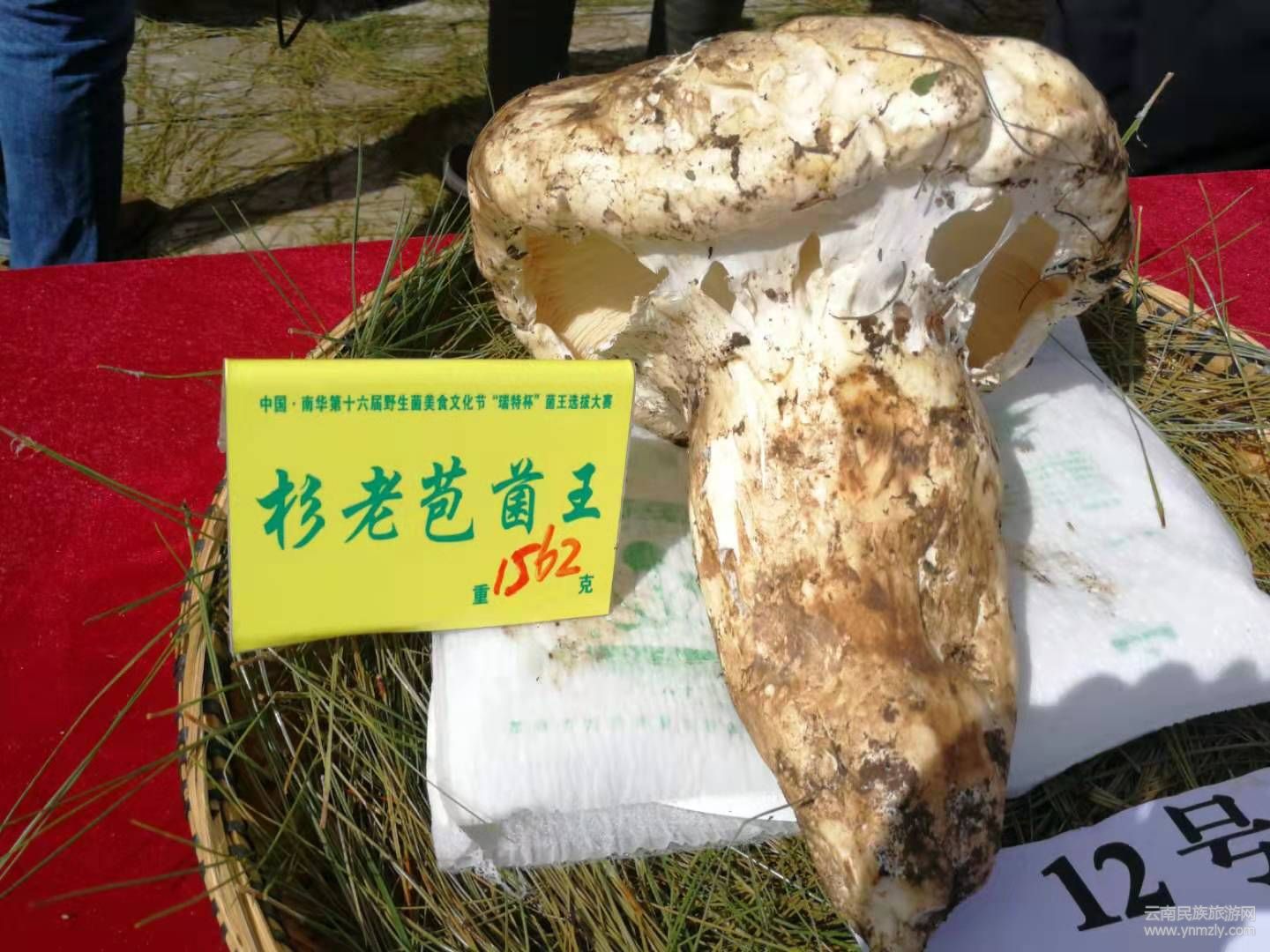 菌王大賽共有10種野生菌參與到評選活動,分別從重量、品質(zhì)以及外觀進行綜合投票評選。經(jīng)過將近3小時的激烈角逐,專家評委陸續(xù)選出各種野生菌菌王。獲得松茸菌王的是7號選手周曉麗選送的松茸,重量568克;獲得塊菌菌王的是3號選手南華咪依嚕天然食品開發(fā)有限責任公司選送的塊菌,重量830克;獲得美味牛肝菌菌王的是8號選手湯從玉選送的牛肝菌,重量474克;獲得虎掌菌菌王的是4號選手周曉麗選送的虎掌菌,重量3082克;獲得香根菌菌王的是3號選手劉剛選送的香根菌,重量670克;獲得杉老苞菌王的是12號選手張麗仙選送的杉老苞,重量1562克;獲得云芝菌菌王的是2號選手楊兆昌選送的云芝菌,重量4986克;獲得靈芝菌菌王的是1號選手李紅軍選送的靈芝菌,重量8840克;獲得干巴菌菌王的是6號選手張建忠選送的干巴菌,重量454克;獲得雞樅菌王的是3號選手劉剛選送的雞樅,重量856克。