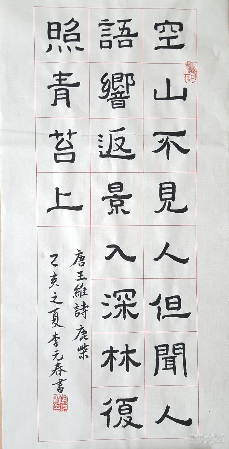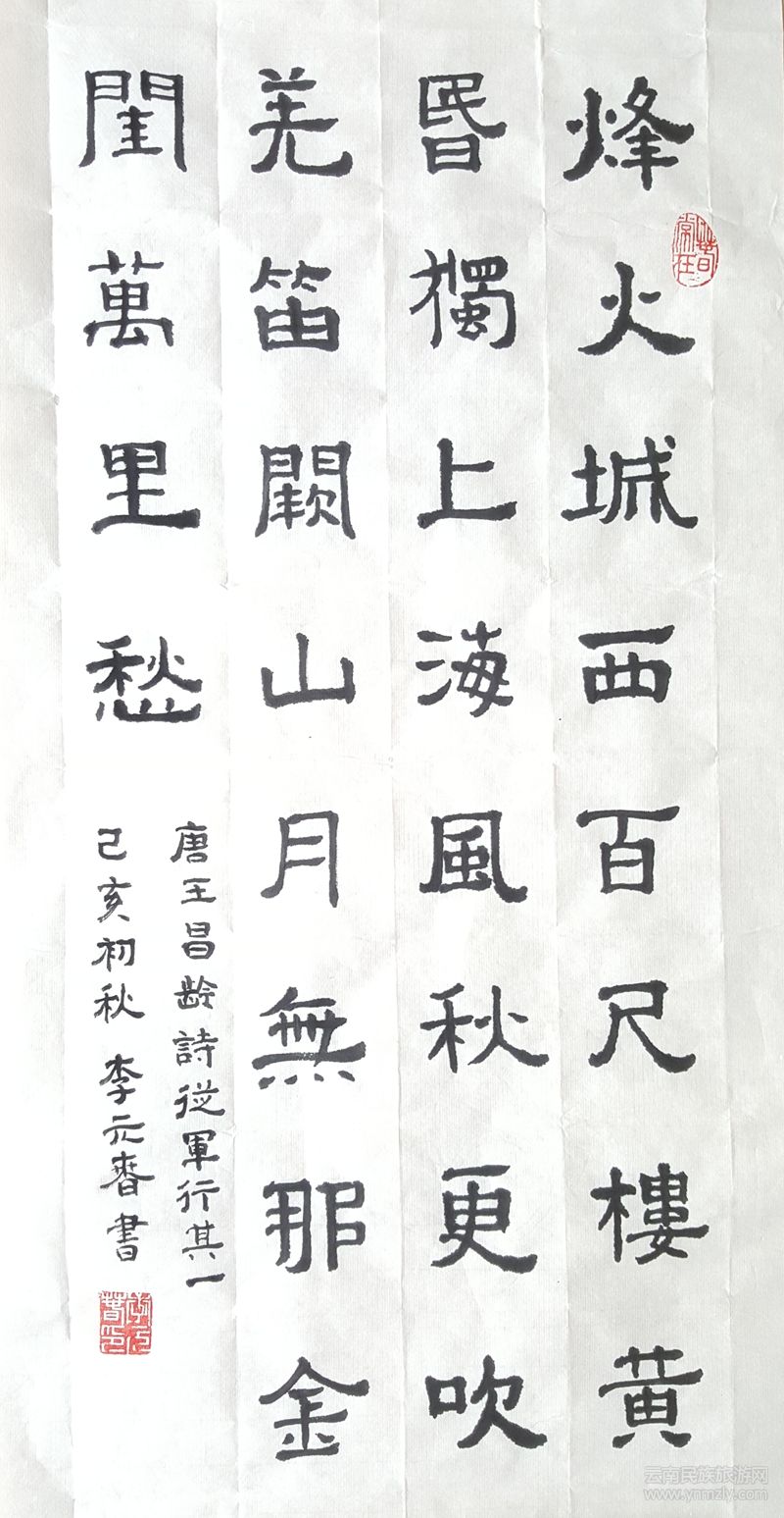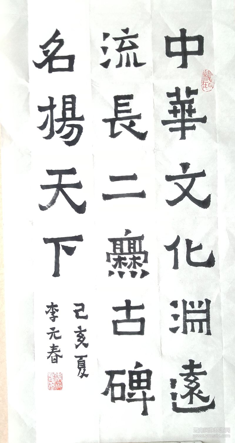 李元春先生的作品,版式清秀,結(jié)字嚴(yán)謹(jǐn),行筆流暢,王體凸顯,基本功厚實(shí)。其作品多次在報(bào)刊、網(wǎng)站刊出,兩次在中國(guó)書(shū)畫(huà)家聯(lián)誼會(huì)新文藝群體展出,多次參加省內(nèi)外書(shū)法展覽及云南省金融系統(tǒng)組織的展覽并獲省農(nóng)業(yè)銀行獎(jiǎng)。其10多幅作品,還被收錄在《云南畫(huà)報(bào)》??吨袊?guó)當(dāng)代詩(shī)書(shū)畫(huà)影鑒藏》一書(shū)上,其書(shū)法成果得到各方好評(píng)。
