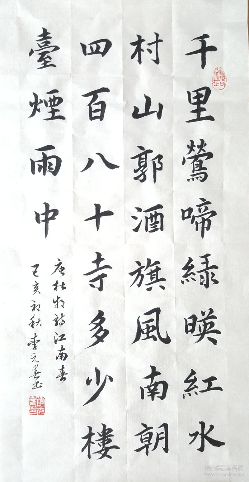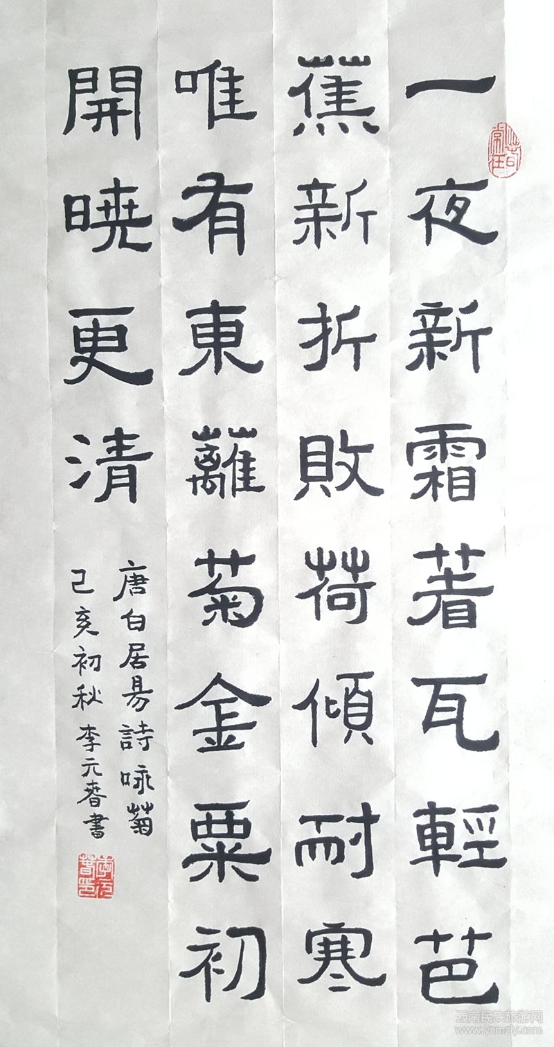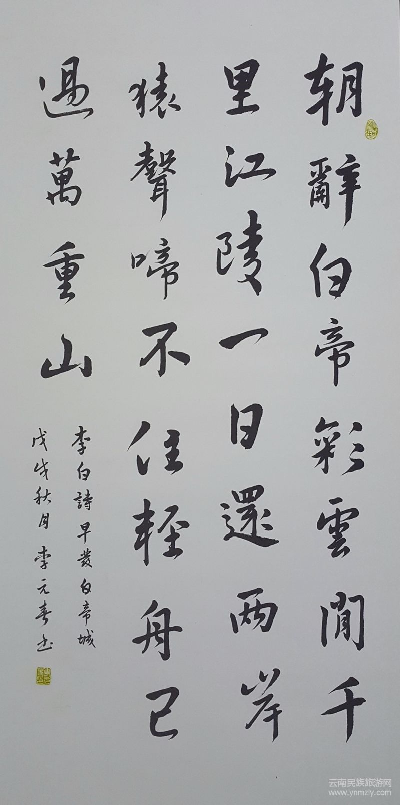 李元春先生的作品,版式清秀,結(jié)字嚴(yán)謹(jǐn),行筆流暢,王體凸顯,基本功厚實(shí)。其作品多次在報(bào)刊、網(wǎng)站刊出,兩次在中國(guó)書(shū)畫(huà)家聯(lián)誼會(huì)新文藝群體展出,多次參加省內(nèi)外書(shū)法展覽及云南省金融系統(tǒng)組織的展覽并獲省農(nóng)業(yè)銀行獎(jiǎng)。其10多幅作品,還被收錄在《云南畫(huà)報(bào)》??吨袊?guó)當(dāng)代詩(shī)書(shū)畫(huà)影鑒藏》一書(shū)上,其書(shū)法成果得到各方好評(píng)。