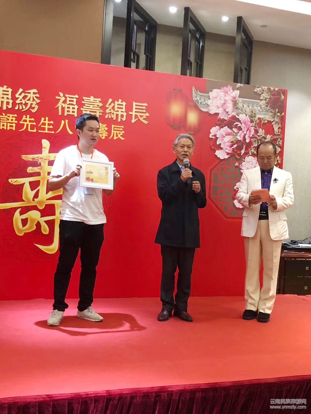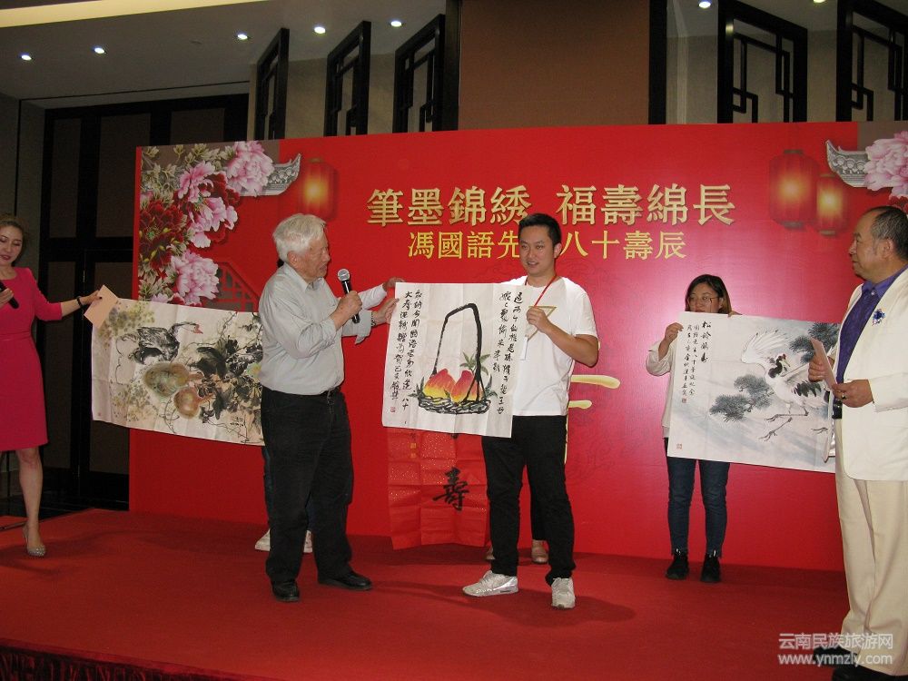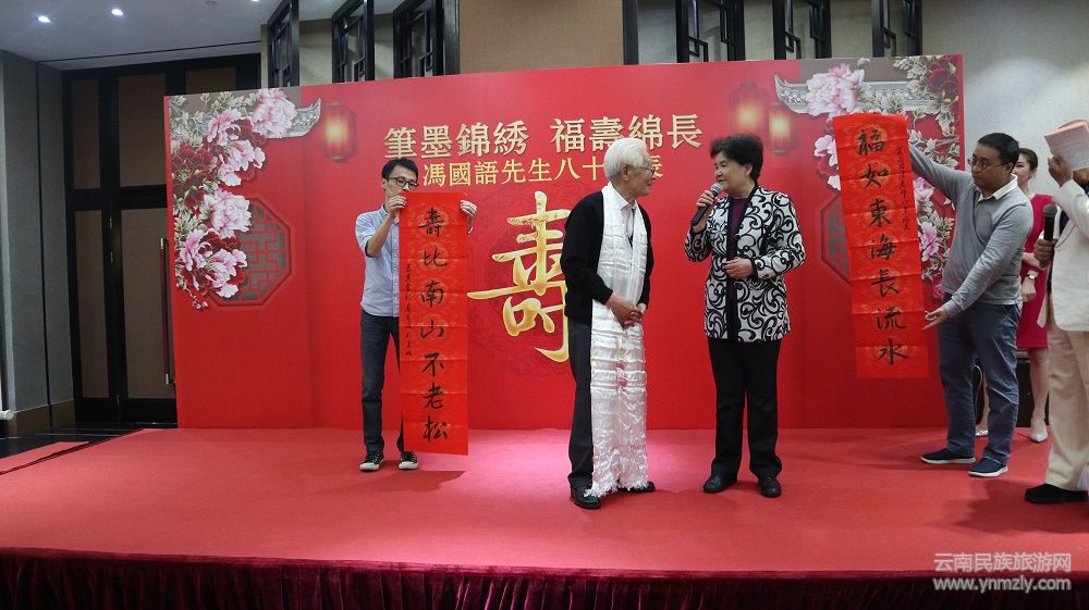 云南民族旅游網(wǎng)訊(通訊員 朱焦)10月25日,100余名書(shū)畫(huà)界人士在昆明洲際酒店聚會(huì),慶賀著名書(shū)法家馮國(guó)語(yǔ)先生八十壽辰。