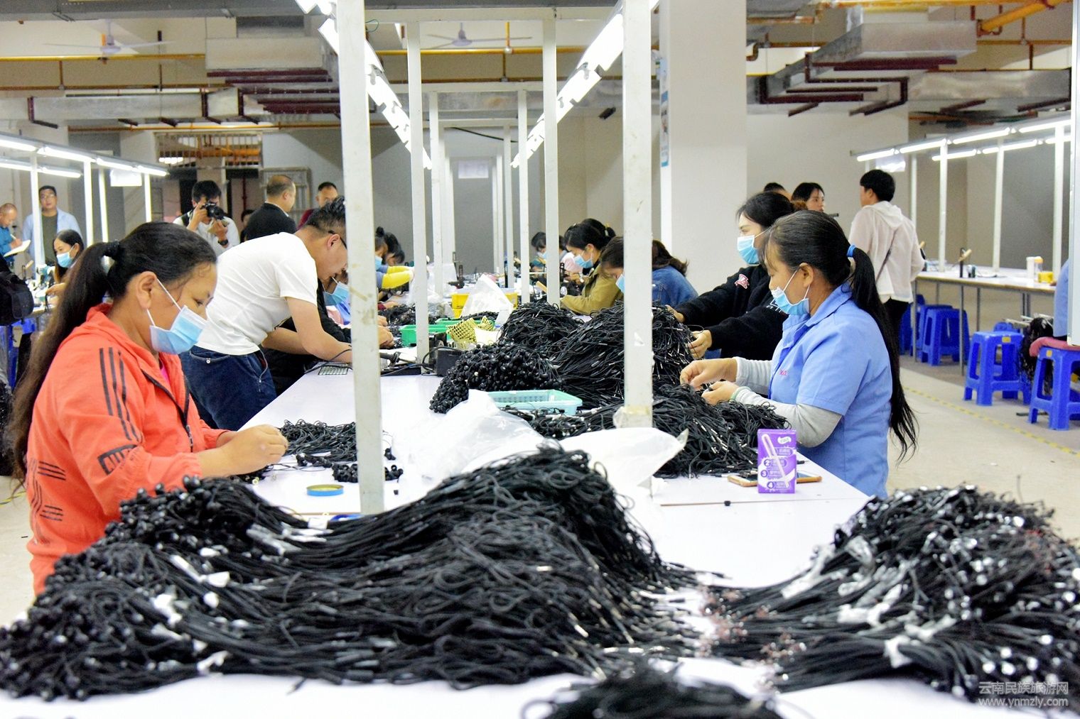 ▲易地搬遷群眾成為園工在保山大華海瀚科技有限公司第一扶貧車間上班