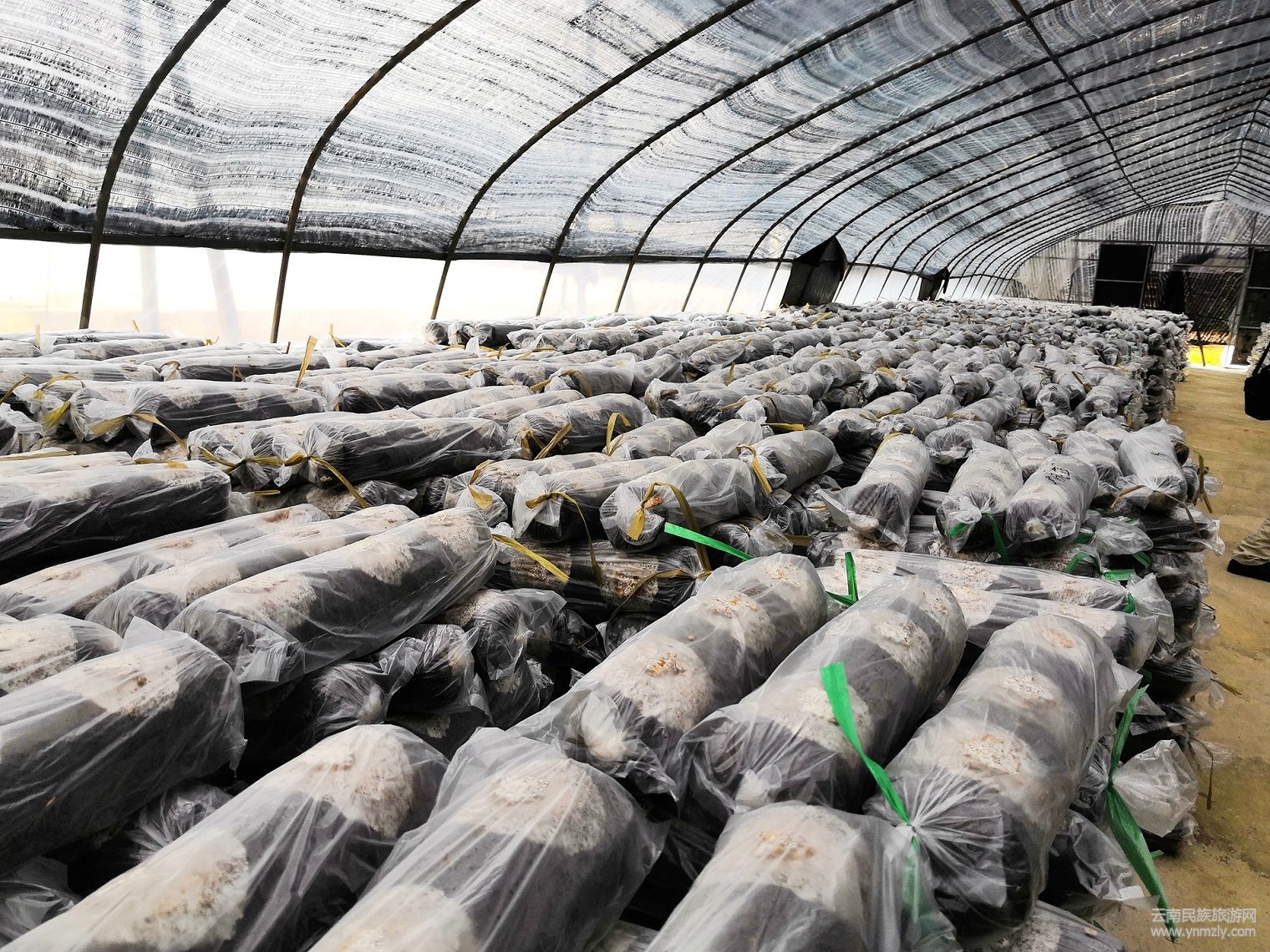 ▲施甸縣凱禾農(nóng)業(yè)科技有限責(zé)任公司香菇菌棒菌種培養(yǎng)大棚