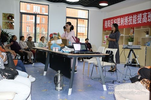走進(jìn)隆陽區(qū)青華街道的紅花小區(qū),這里正在舉辦婦女刺繡手工藝比賽。搬遷過來的各族婦女,聚在一起熱鬧地“秀手藝”、“絢刺繡”。