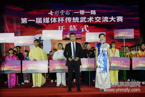 11月16日,“七彩云南·一帶一路”第一屆媒體杯傳統(tǒng)武術(shù)交流大賽即在七彩云南·古滇名城正式開賽,著名體育主持人黃健翔與云南省知名主持人顧姣姣點(diǎn)燃了現(xiàn)場。