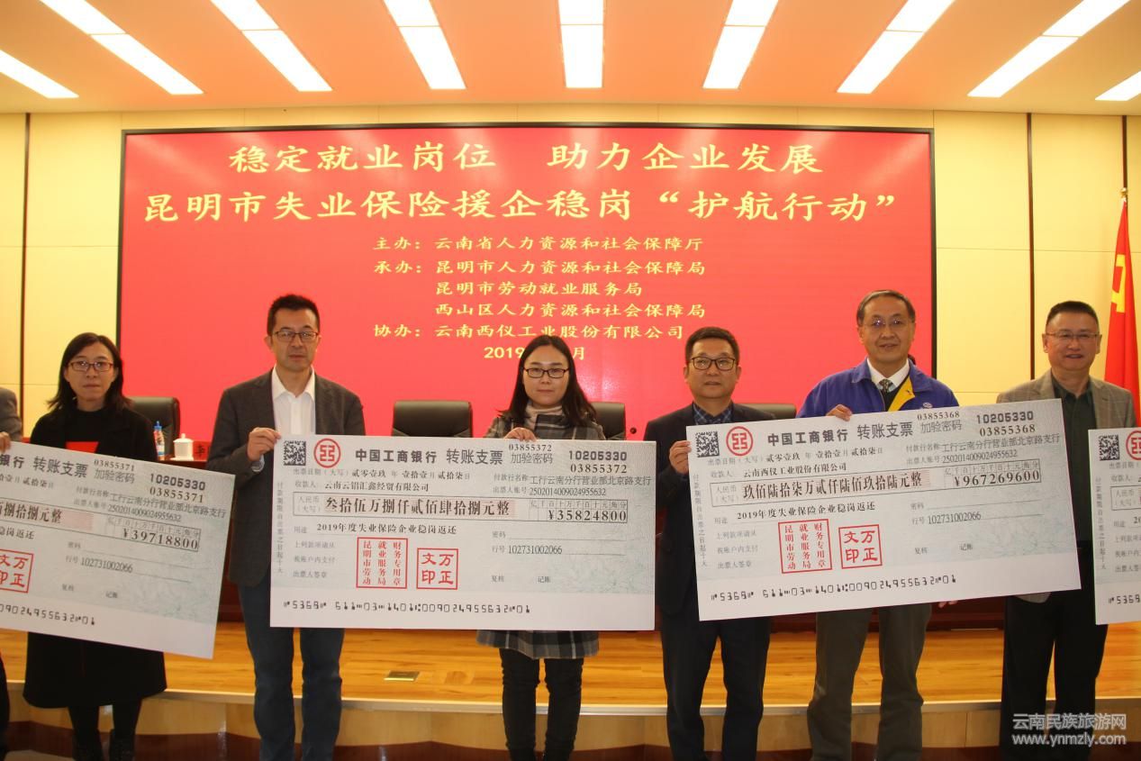 云南民族旅游網(wǎng)訊(記者浦紹猛)2019年11月27日上午,昆明市2019年暫時性生產(chǎn)經(jīng)營困難且恢復(fù)有望企業(yè)穩(wěn)崗返還發(fā)放儀式在云南西儀股份有限公司舉行,共向昆明市2019年認定的云南西儀股份有限公司等5戶暫時性生產(chǎn)經(jīng)營困難且恢復(fù)有望企業(yè)發(fā)放穩(wěn)崗返還資金3423.26萬元,為幫助暫時困難企業(yè)發(fā)展,穩(wěn)定職工就業(yè)起到了較好的促進作用。云南省人力資源和社會保障廳黨組成員、副廳長石麗康參加了發(fā)放儀式并從實施失業(yè)保險援企穩(wěn)崗意義重大、失業(yè)保險援企穩(wěn)崗作用逐步顯現(xiàn)、繼續(xù)做好援企穩(wěn)崗工作的幾點要求作了重要講話。參加這次發(fā)放儀式的有昆明市45戶企業(yè)代表,云南省、昆明市、區(qū)人力資源和社會保障部門相關(guān)負責(zé)人。