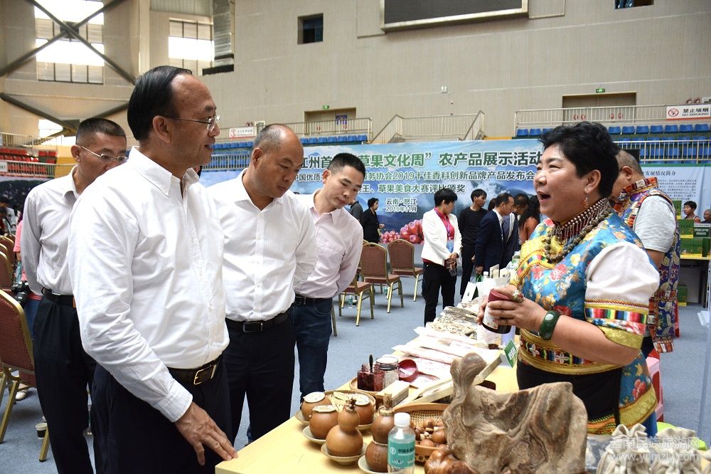 在品牌發(fā)布會現(xiàn)場,琳瑯滿目的草果美食、草果工藝品以及怒江火腿、咖啡、蜂蜜等農(nóng)特產(chǎn)品吸引了不少市民前來參觀購買。