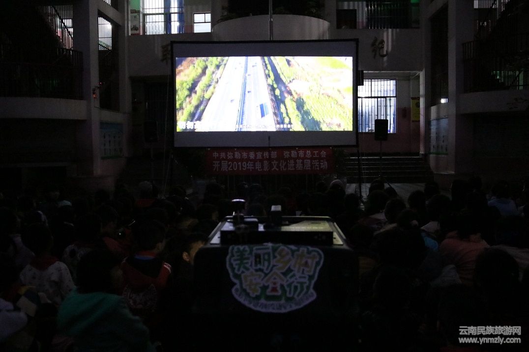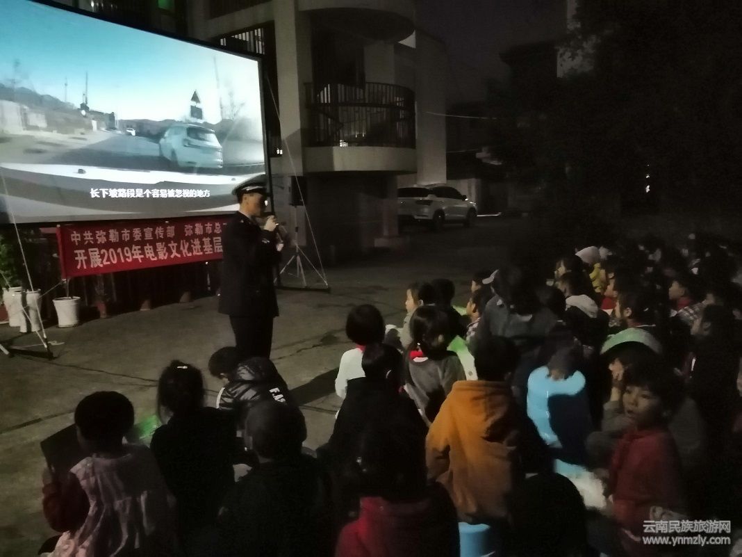 11月13日晚,彌勒市公安局交警大隊(duì)“美麗鄉(xiāng)村安全行、電影下鄉(xiāng)進(jìn)萬村”活動(dòng)走進(jìn)彌陽鎮(zhèn)祿豐村委會(huì)雨舍小學(xué),在學(xué)校設(shè)置放影臺(tái),該校300余名師生和附近100余名群眾參與觀影活動(dòng)。