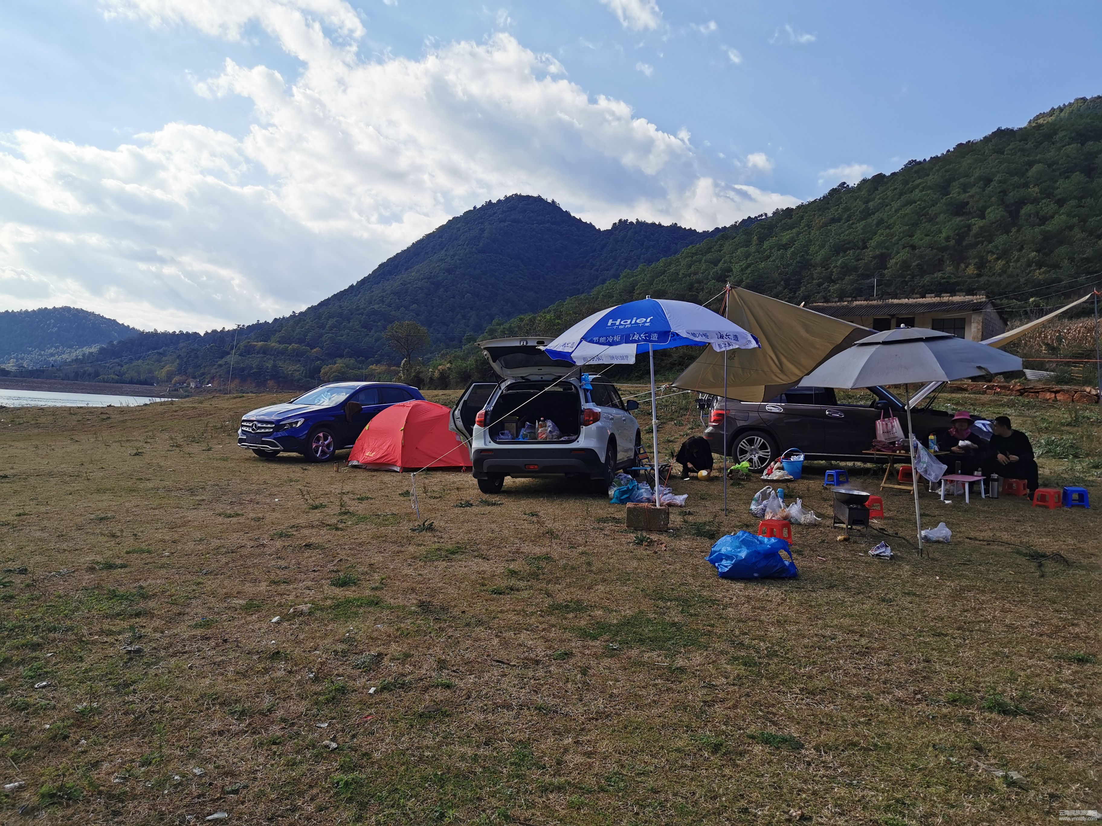 11月8日,星期五。我們帶上好心情驅(qū)車(chē)從昆明出發(fā),沿轎子雪山旅游專(zhuān)線一路坦途,行駛兩個(gè)小時(shí)多一點(diǎn)的路程,于中午12點(diǎn)半便來(lái)到了目的地東海水庫(kù)。打前站的朋友已經(jīng)支起魚(yú)竿開(kāi)始垂釣。