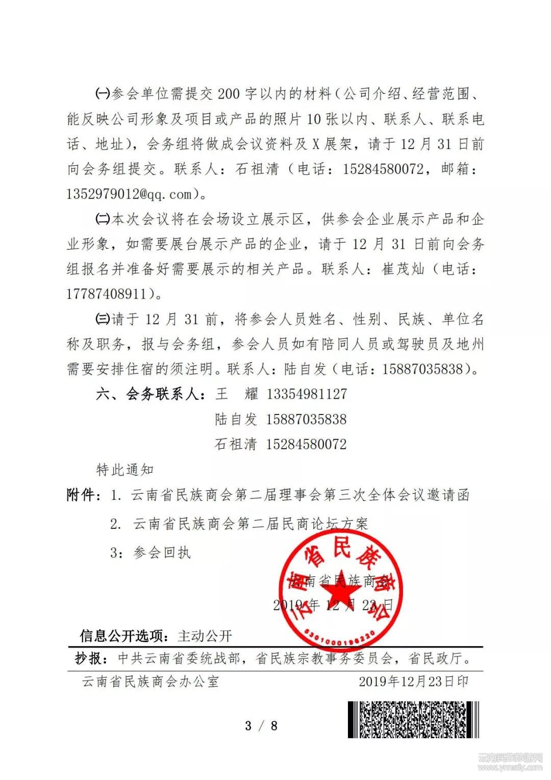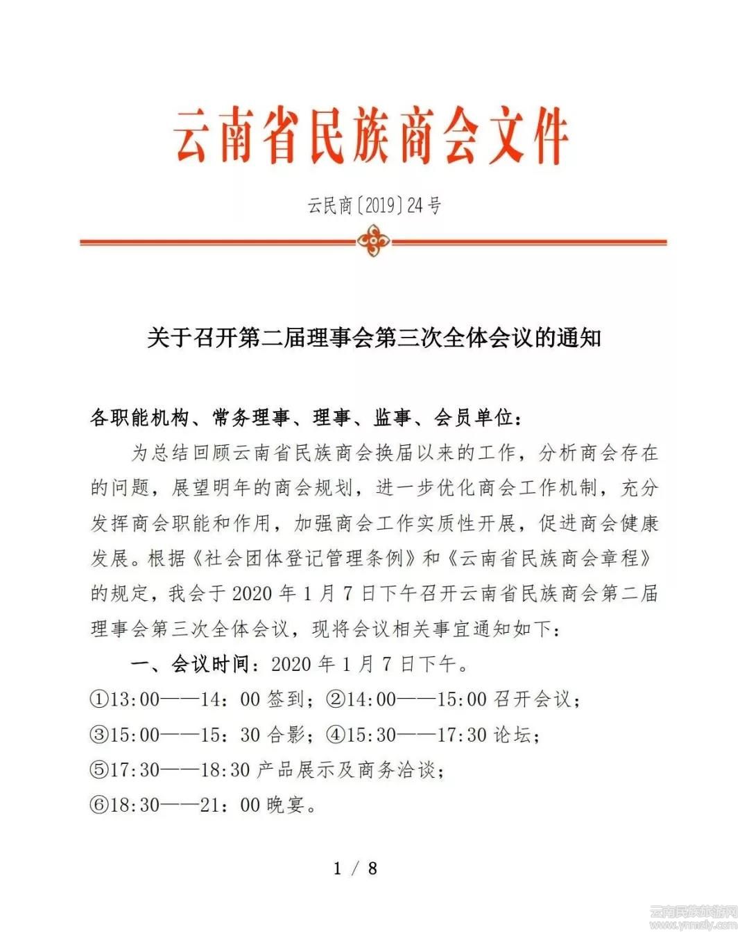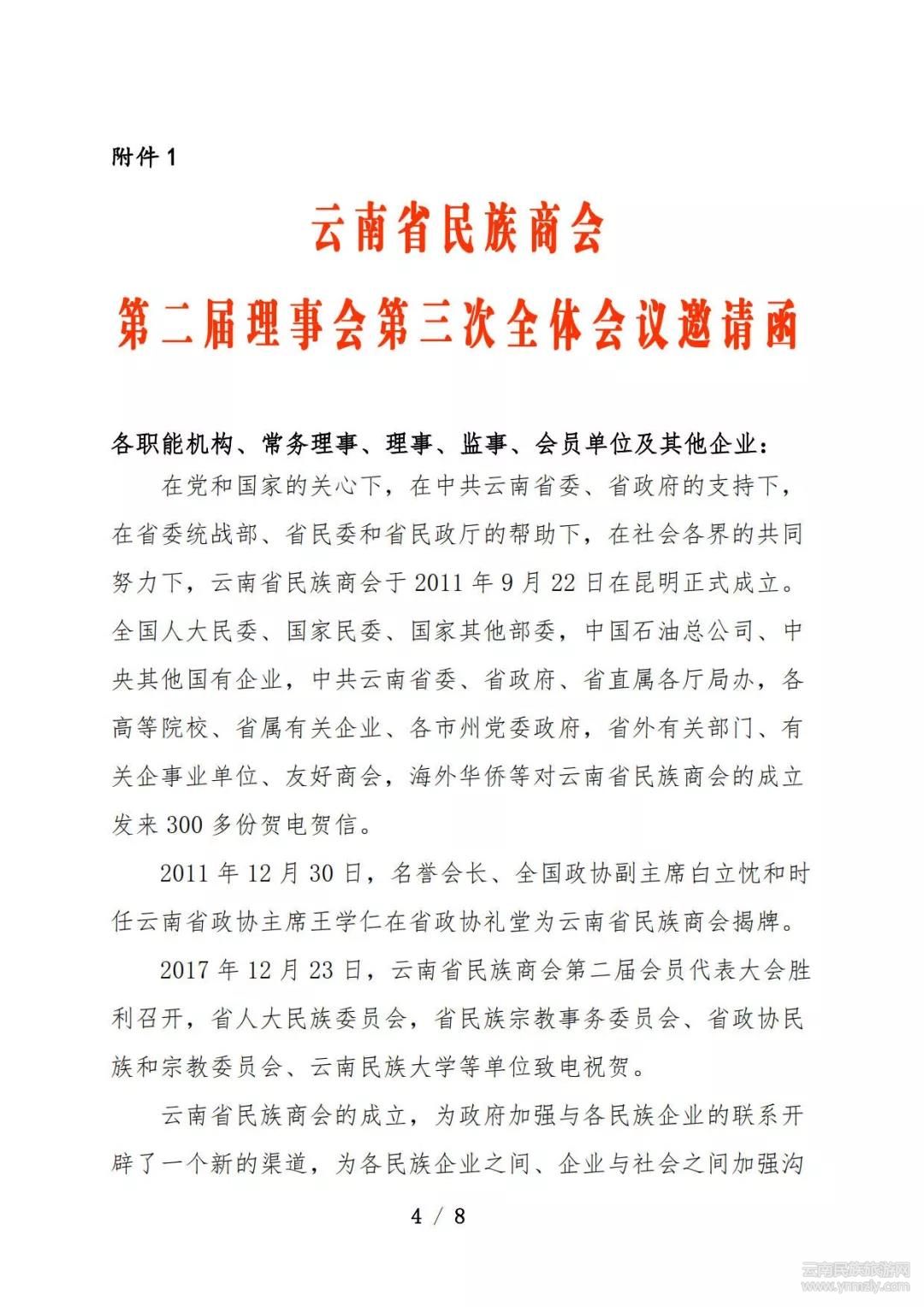 附件: 1.云南省民族商會第二屆理事會第三次全體會議邀請函