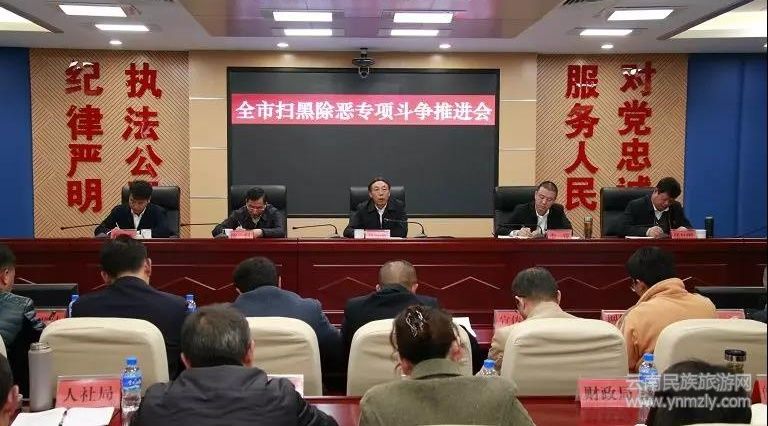 云南民族旅游網(wǎng)訊(通訊員 劉志華)12月25日,玉溪召開(kāi)全市掃黑除惡專項(xiàng)斗爭(zhēng)推進(jìn)會(huì),傳達(dá)全國(guó)全省掃黑除惡專項(xiàng)斗爭(zhēng)第二次推進(jìn)會(huì)及市委第152次會(huì)議精神,安排部署工作。副市長(zhǎng)、市公安局局長(zhǎng)李銳主持會(huì)議,市委常委、市委政法委書記馬加能出席會(huì)議并講話。