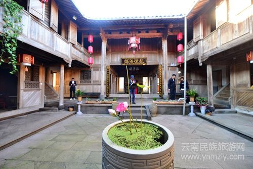 大院布置嚴(yán)謹(jǐn),樓臺高大寬敞,有廳房、前花園、耳房、廚房、糧庫,北邊有馬廄馬場,還有樹木蔥郁的園林。大院雕梁畫棟,工藝精湛;楹聯(lián)匾額,熠熠生輝;古茶吐香,翠竹掩映。