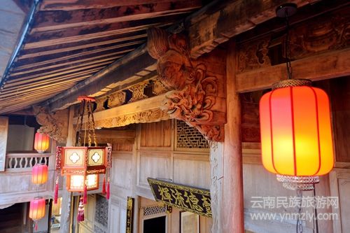 院落結(jié)構(gòu)為典型的三坊一照壁、四合五天井、走馬串角樓。所選用的木材均為本地珍貴樹種——楸木,花窗是楊大文在緬甸經(jīng)營的鐵器公司用馬幫馱來的英國鐵藝。
