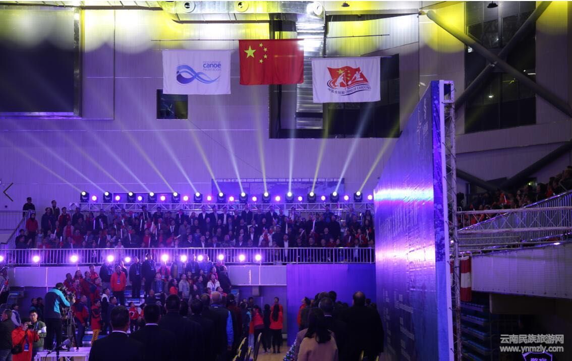全體參會(huì)人員起立,面向會(huì)旗,奏國(guó)際皮劃艇聯(lián)合會(huì)會(huì)歌。